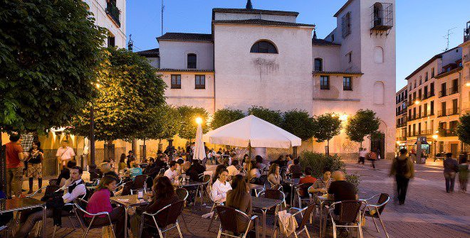 The first thing that strikes visitors from outside Madrid is that the city has a lively social and nightlife scene every day of the week. And when the weather permits, the terraces spill out onto the streets. Many of the city’s most legendary squares are located in the Malasaña neighborhood, and there are few things more traditional than having a beer in the Plaza del Dos de Mayo, where the sculpture of Madrid’s heroine stands, or in the Plaza de Luna (although this is its colloquial name, its official name is Santa María Soledad Torres Acosta), where the famous Cines Luna movie theater was located. In Plaza San Ildefonso, on one side is the church of San Ildefonso and on the other is the century-old Farmacia Malasaña, known as Farmacia Puerto. Above all, it always offers an interesting bustle of terraces and people crossing this space.
