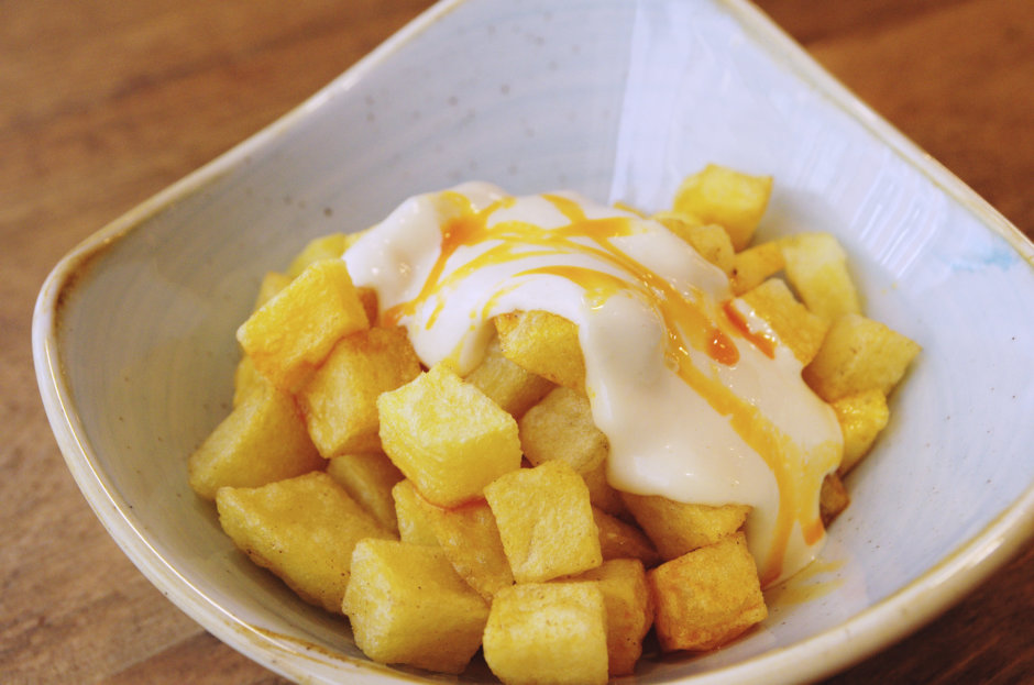A few blocks away, Askuabarra reinterprets tradition with a fun and contemporary twist. Its patatas bravas are pure Madrid spirit: golden, crispy, with a sauce that balances spice and elegance. A glass of Verdejo wine adds citrus and floral notes, cooling the heat and prolonging the pleasure. Here, every bite invites you to raise your glass and continue the journey.