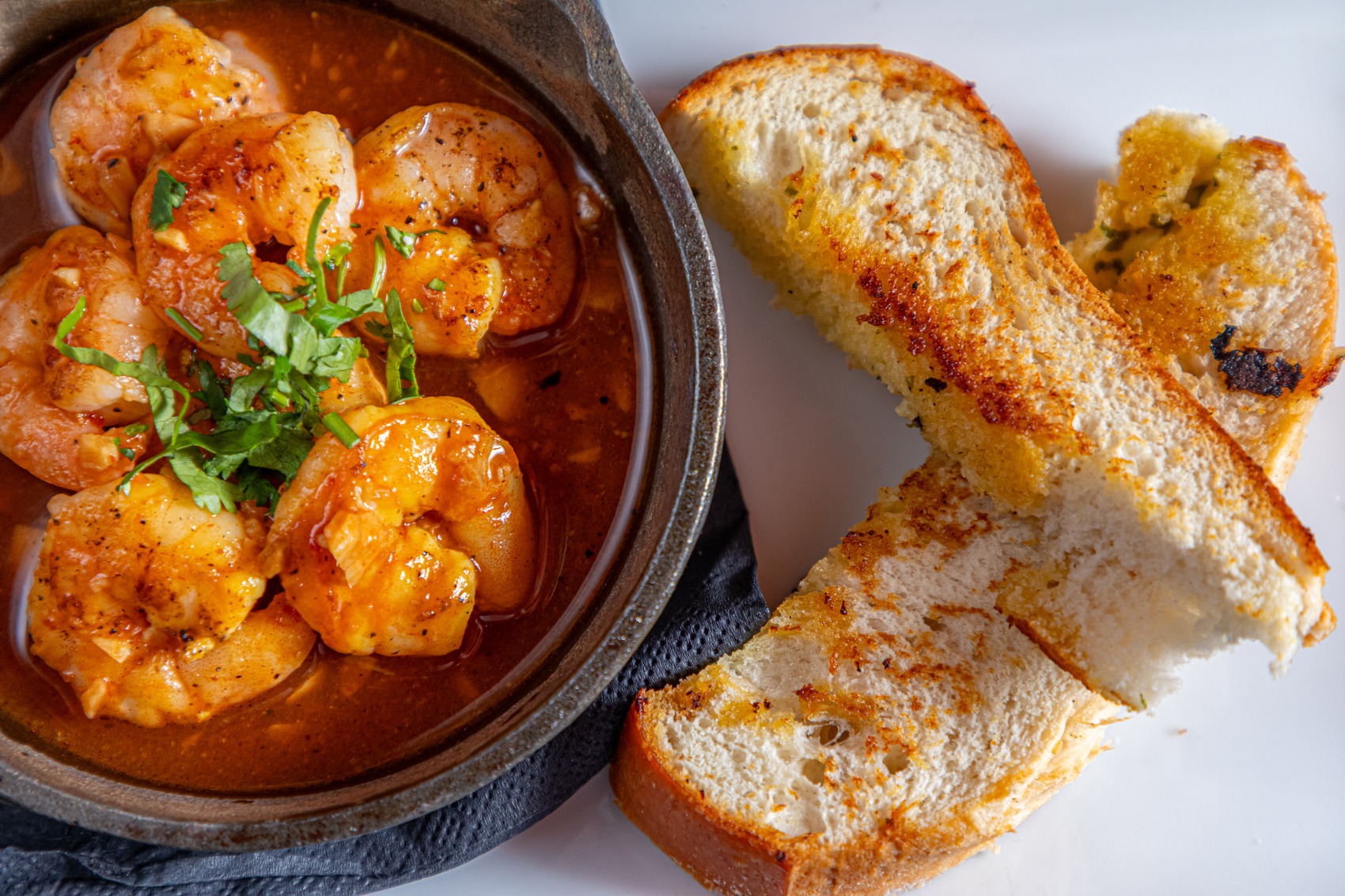 We begin with a classic that needs no introduction. At La Casa del Abuelo, garlic prawns sizzle in clay pots, releasing an unmistakable aroma of garlic and the sea. This is Madrid in its purest form, a place where time seems to have stood still. A well-chilled Godello is the ideal accompaniment: fresh, salty, and with that Galician elegance that balances the intensity of the dish.