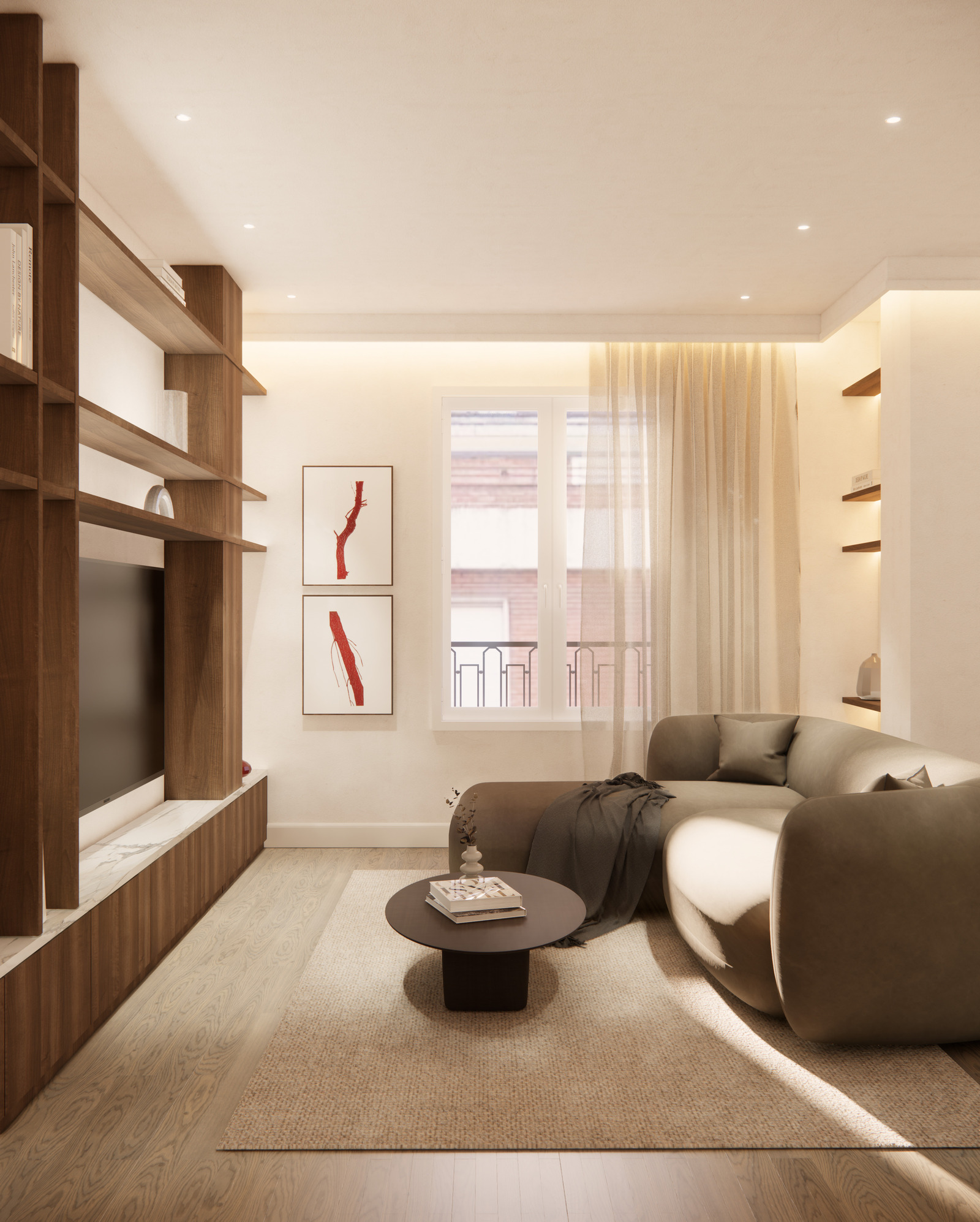 The spacious and luminous social area features floor-to-ceiling windows that blend classic charm with contemporary living, creating a space designed for comfort, light, and everyday elegance.