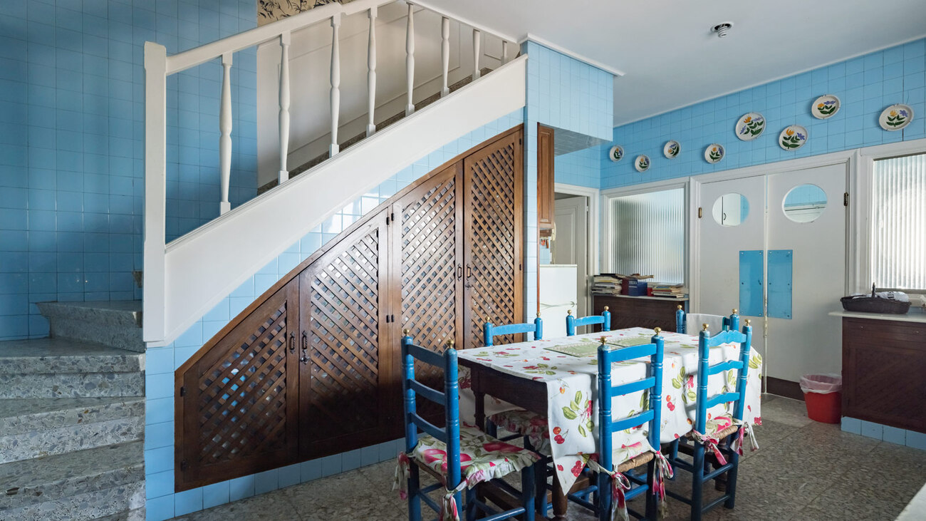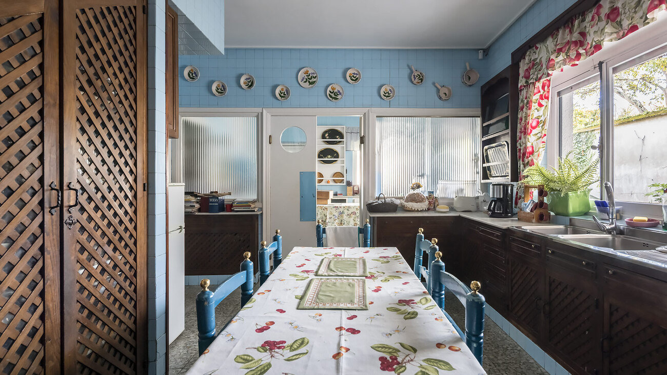 The main floor welcomes you with a spacious foyer that leads to a bright living-dining room connected to a covered terrace, which provides access to the garden. On this level, there are also two kitchens, an office, and three bedrooms, along with a full bathroom and a guest toilet.