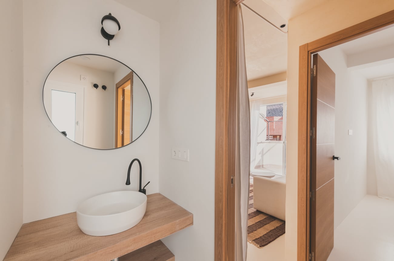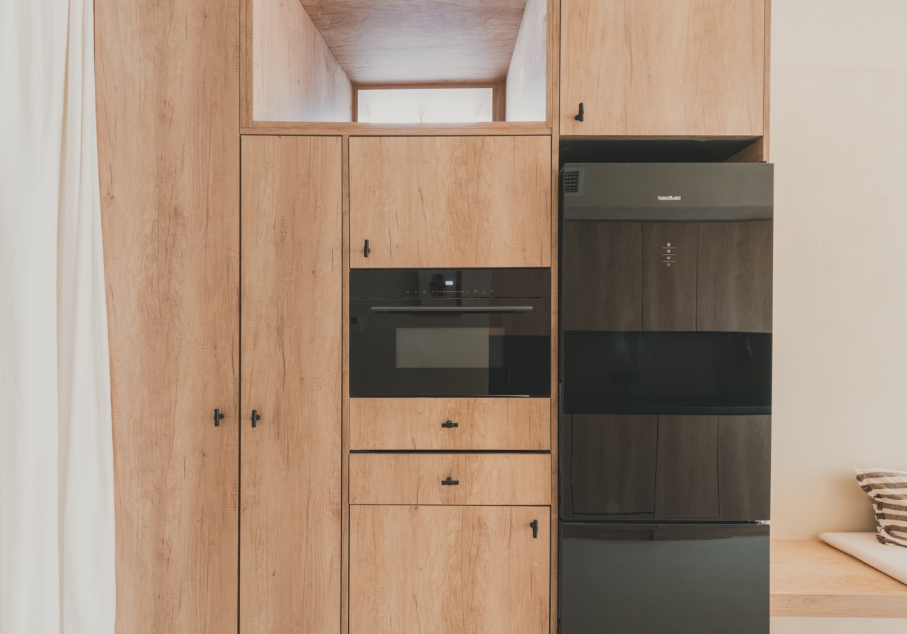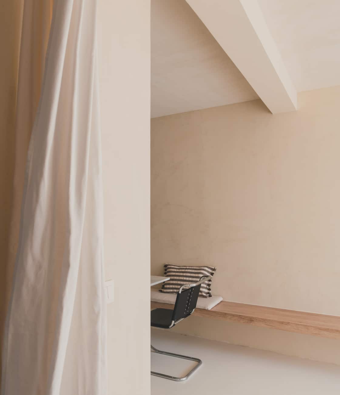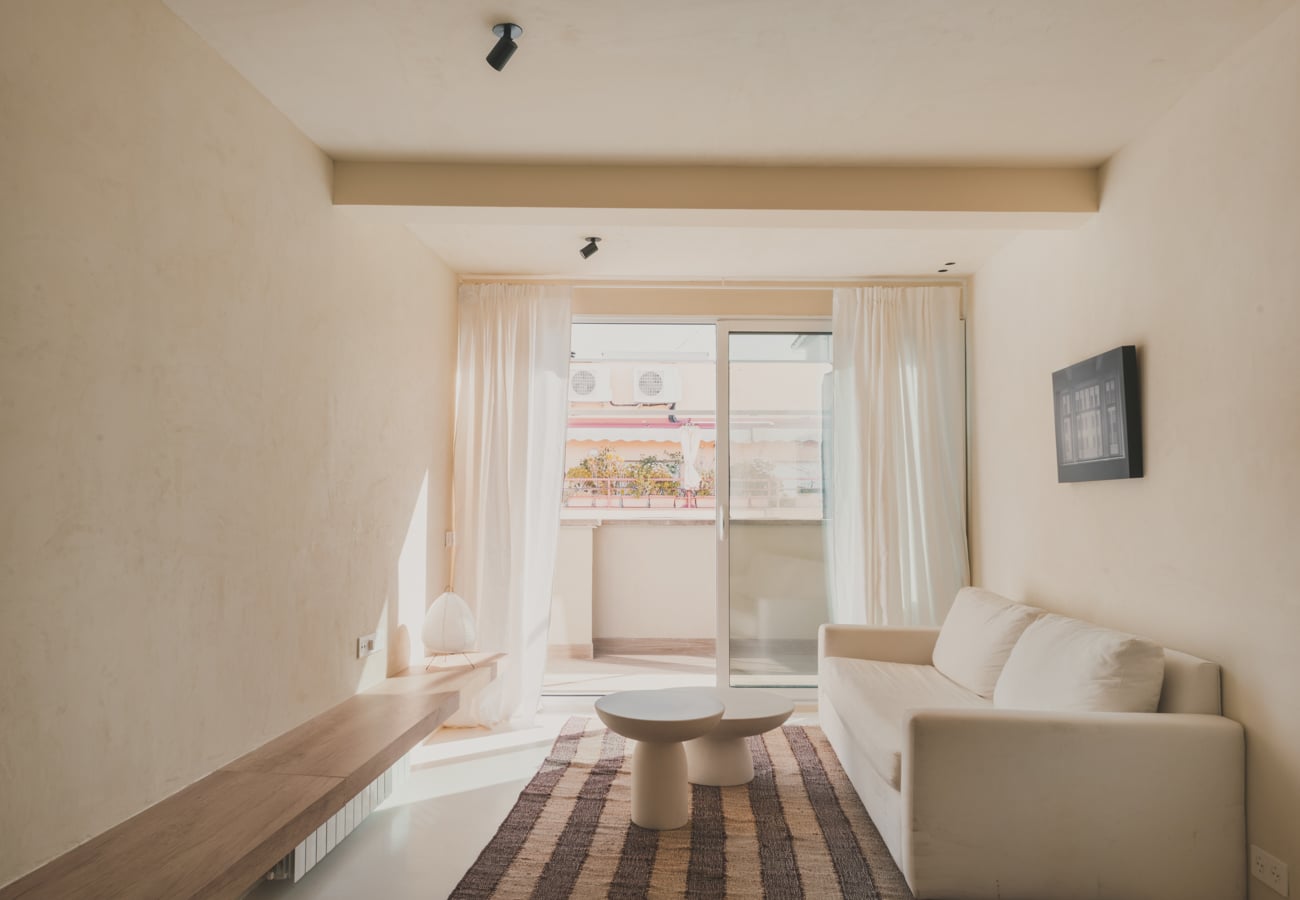 The daytime area, with integrated kitchen and living room, is arranged as a single fluid and contemporary environment. Spaces connect without interruption, materials interact with natural light, and every decision seeks to create a sense of calm and openness.