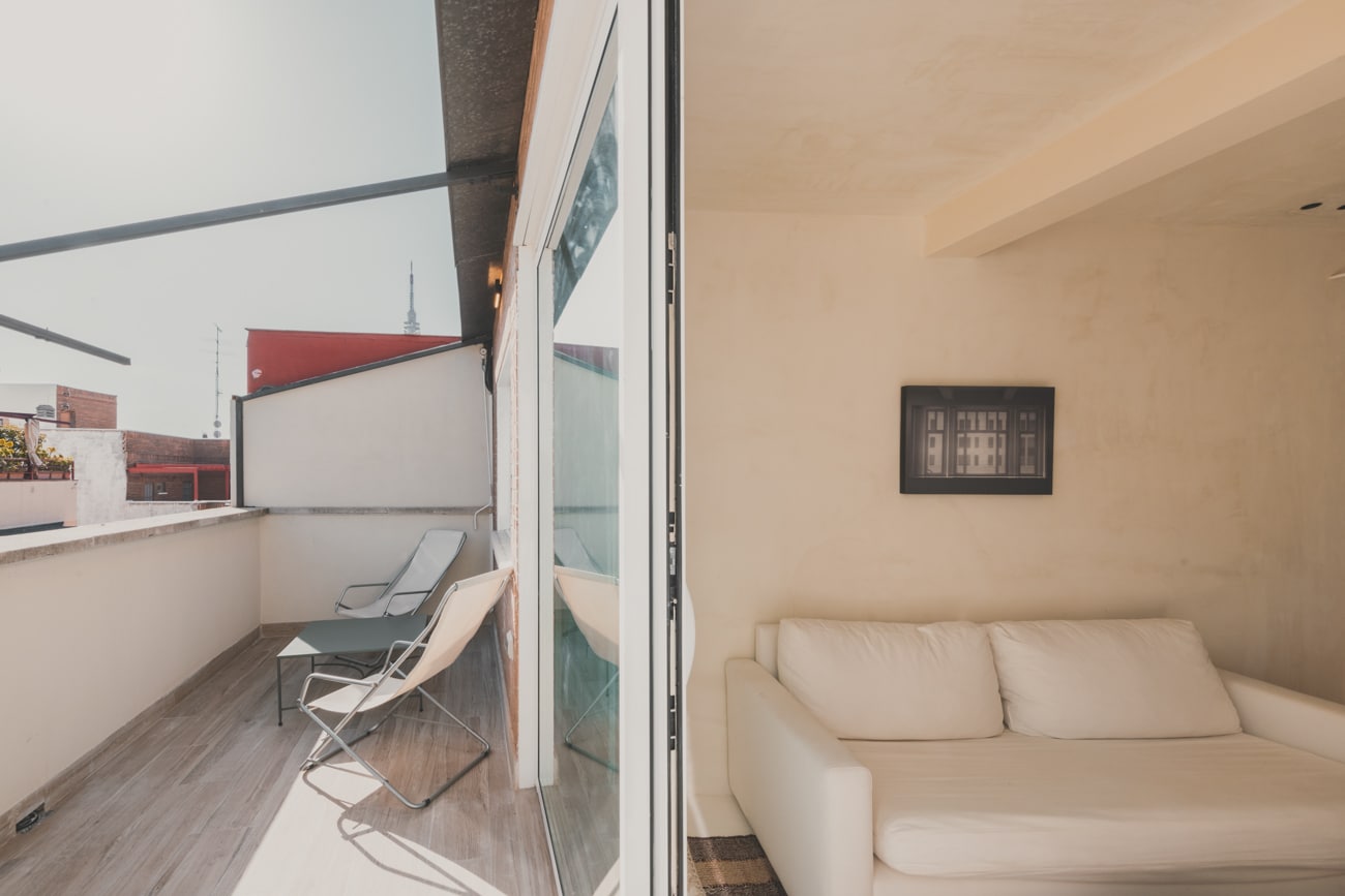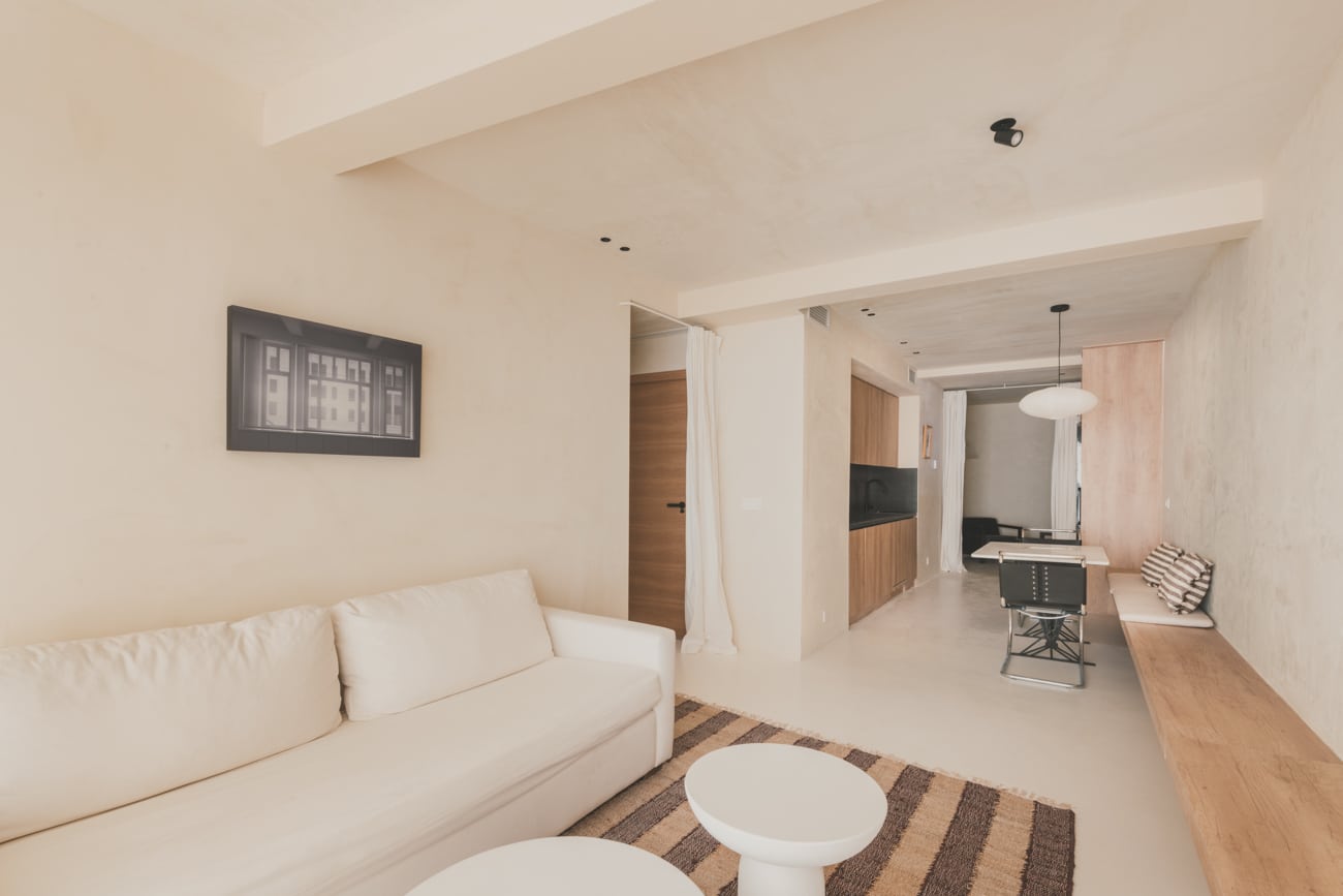 This newly renovated penthouse opens up to the sky as a serene, light-filled space—a project where architecture is expressed through light and the seamless continuity of spaces.