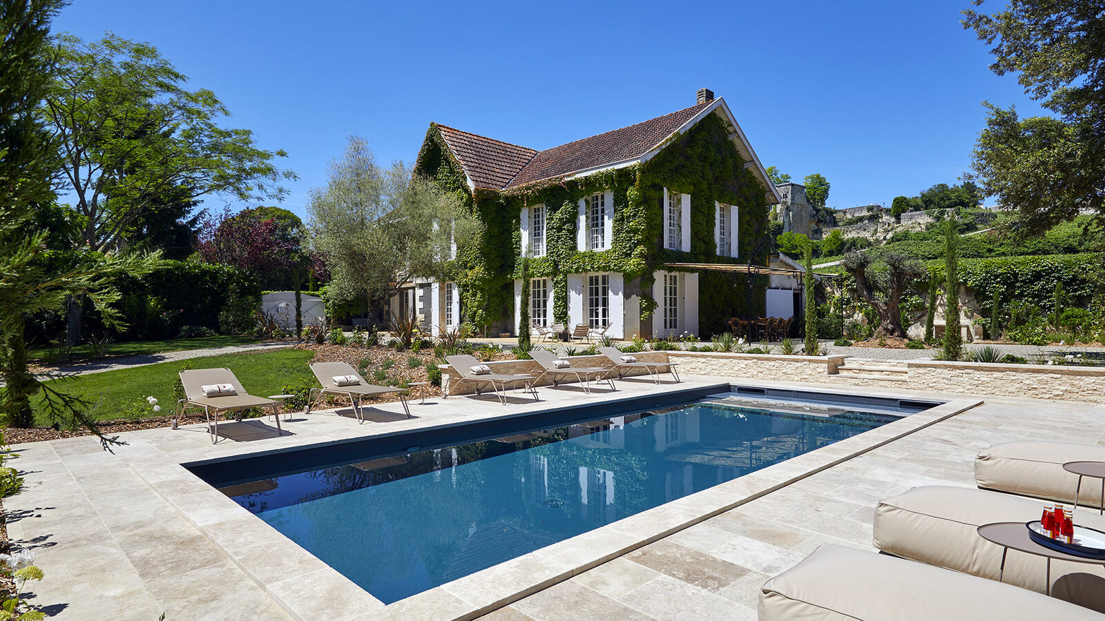 This holiday rental house is set in a beautiful private garden of 2,500 m², equipped with a large swimming pool and fantastic views over the village and the surrounding vineyards of Château Ausone, La Rochelle, Clotte, Pavie and Pavie-Macquin.