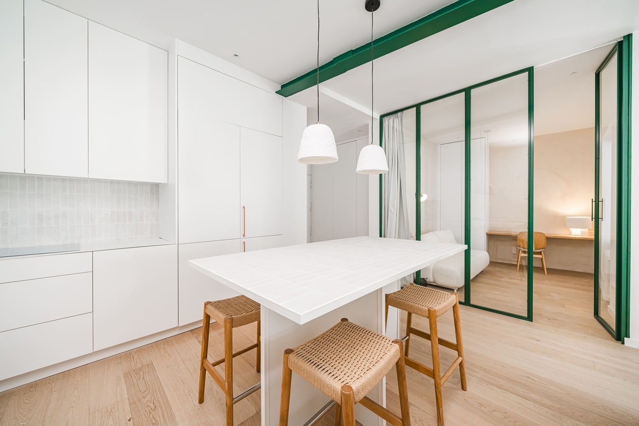 With a bespoke design, the property features a spacious social area that seamlessly integrates the living and dining spaces, along with a kitchen with a central island, all within an open and fluid layout.