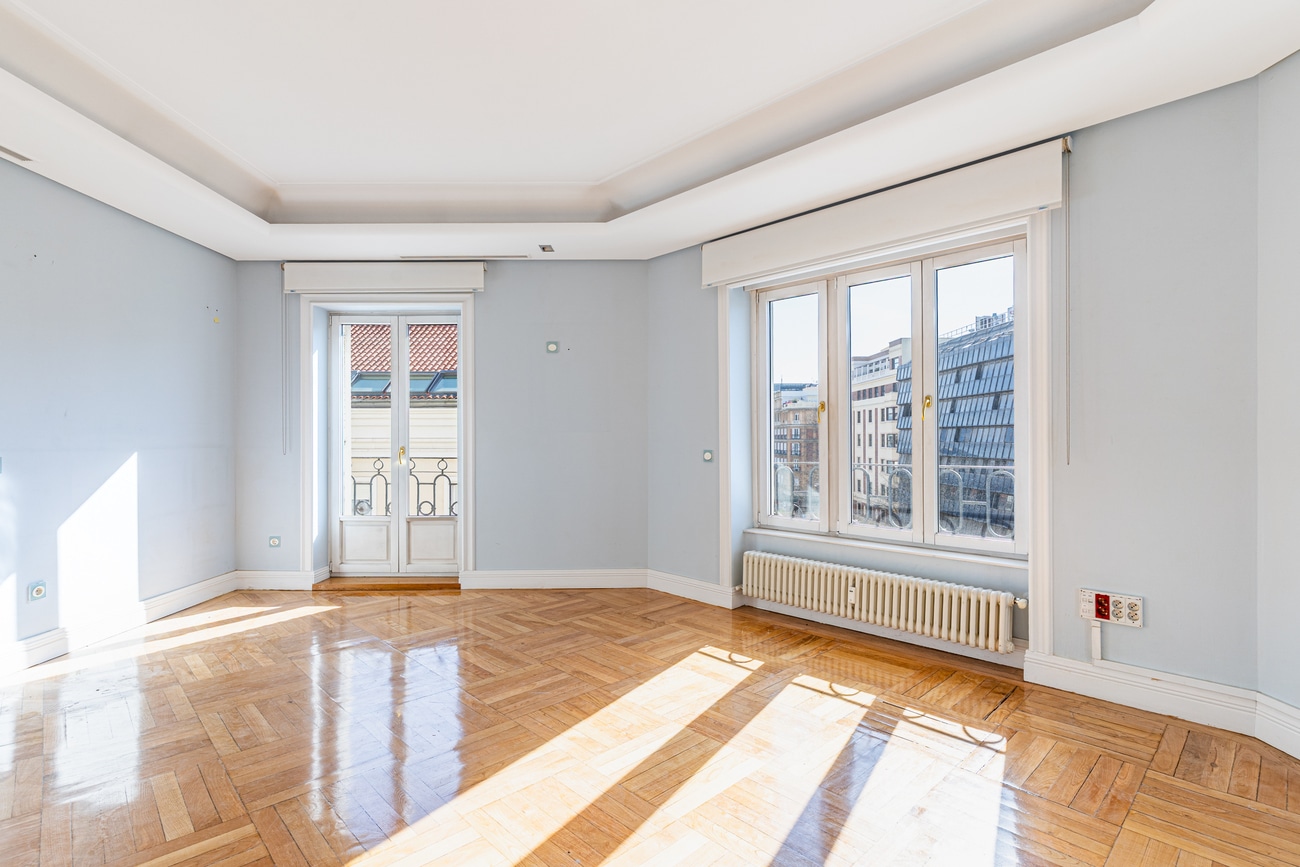In one of the most sought-after addresses in Recoletos, this property occupies a privileged corner position within a classic building that preserves the elegance of traditional Madrid architecture. An apartment with presence, light, and generous proportions that offers the perfect starting point to conceive a truly exceptional residence.