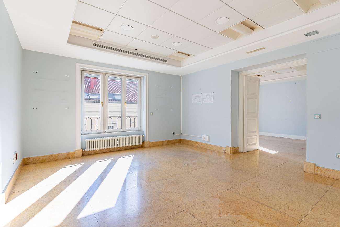 This property presents an exceptional opportunity to create a bespoke residence in one of Madrid’s most elegant addresses. Its generous proportions and privileged exterior condition allow for the conception of a large-scale residential project, where architecture, light, and layout interact naturally.