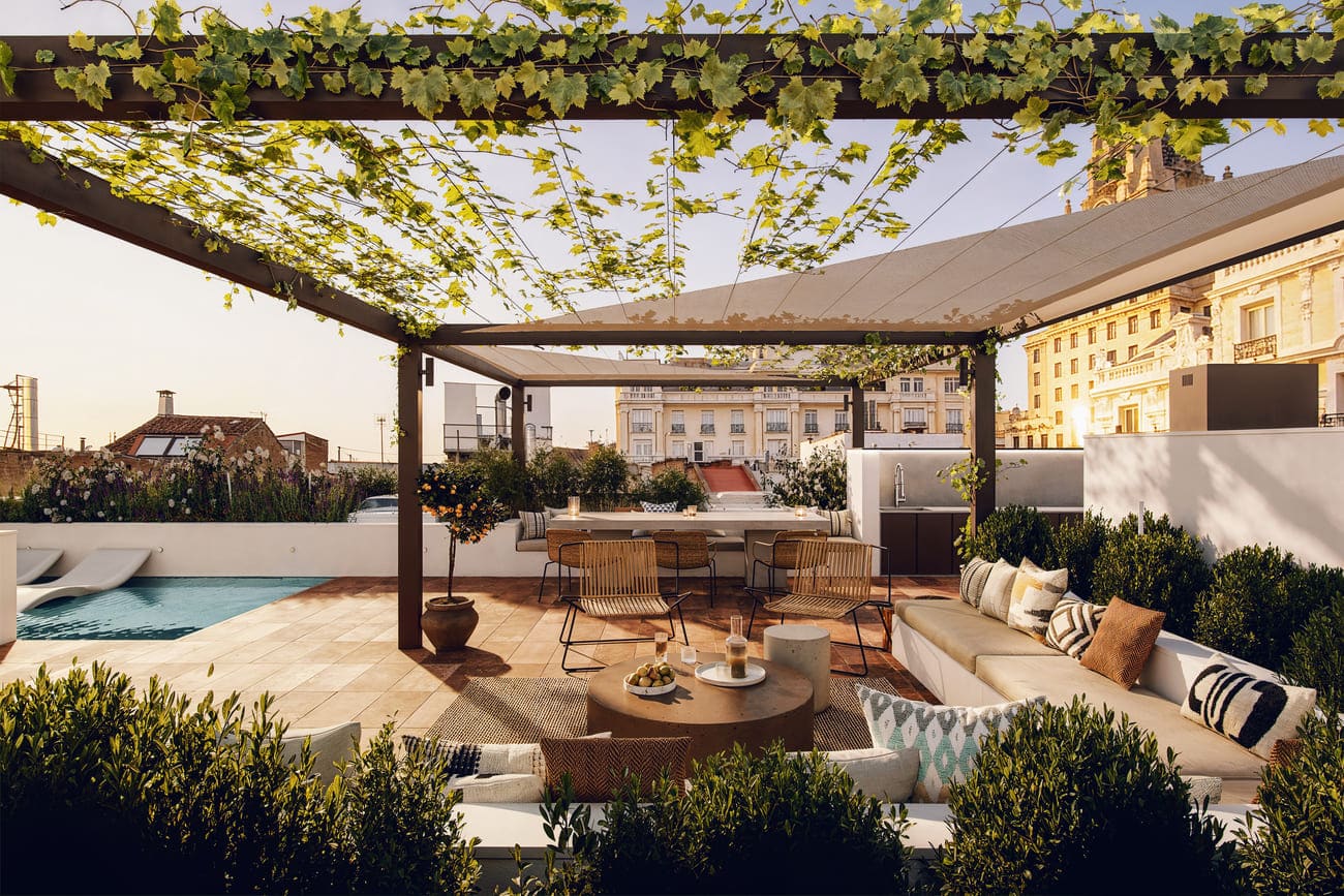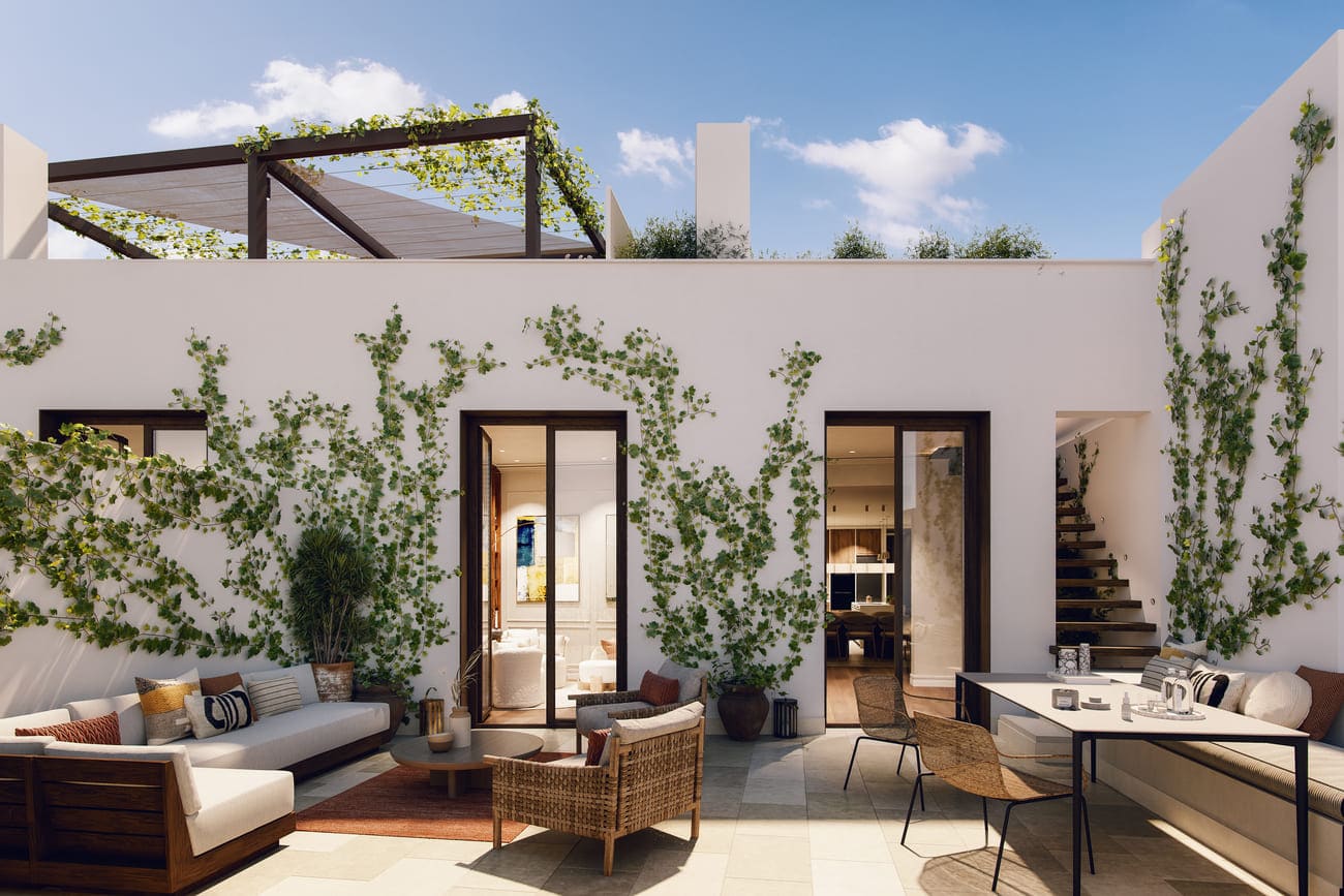 On the upper level lies the crown jewel: a spectacular rooftop conceived as a vast outdoor social space. Its extraordinary size allows for the creation of lounge areas, a dining space, a swimming pool, and gardens, offering an experience rarely found in the very center of the city. A true elevated oasis that brings a sense of nature and freedom to urban living.
