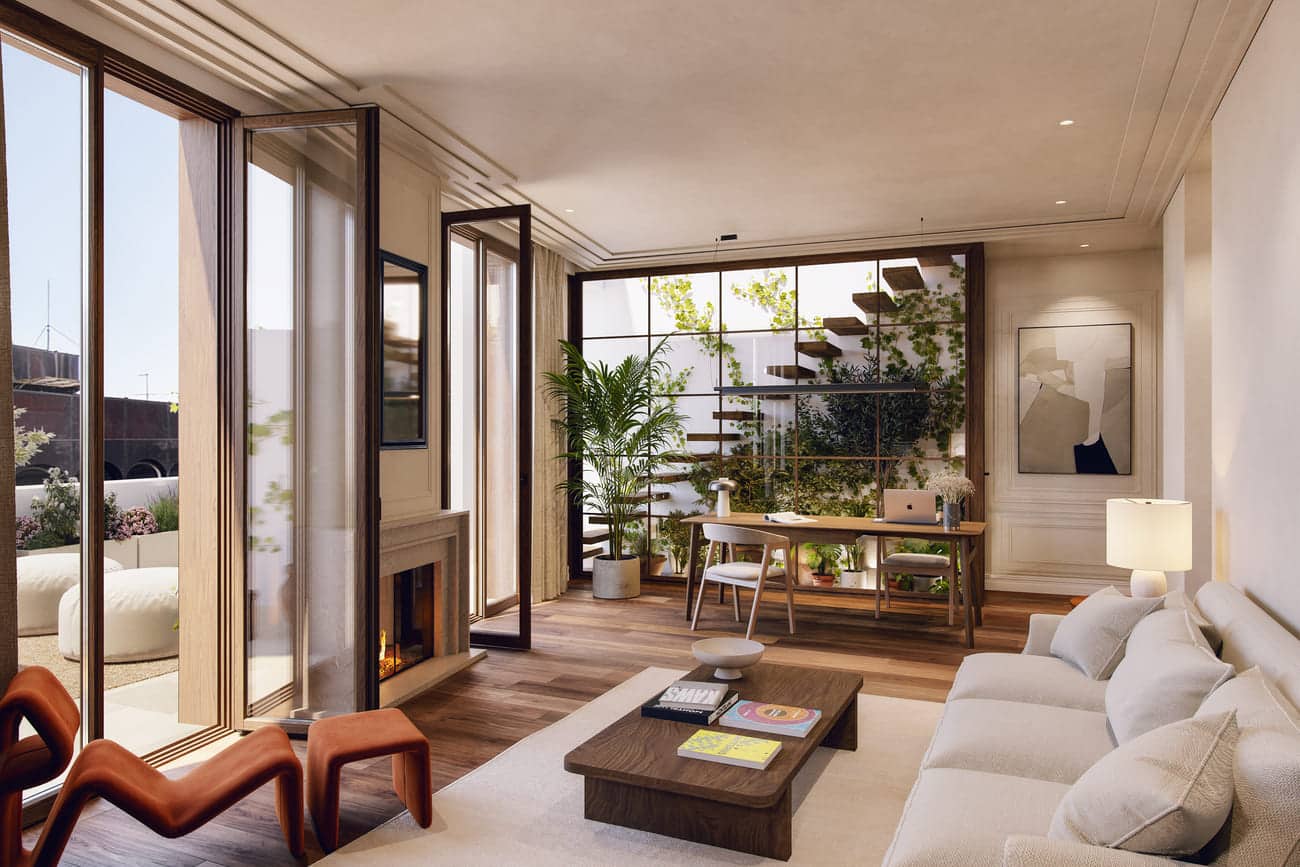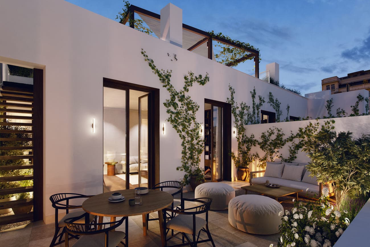 A unique opportunity to acquire two singular penthouses to be renovated in the heart of Madrid, marketed with an approved architectural project and valid licenses for the construction of two exclusive homes featuring expansive terraces and views of some of the city’s most iconic buildings. A contemporary and sophisticated proposal that celebrates elevated living, with terraces conceived as extensions of the social areas and private rooftop gardens with a swimming pool, designed as truly livable landscapes. A rare opportunity to create an elevated retreat in the city.