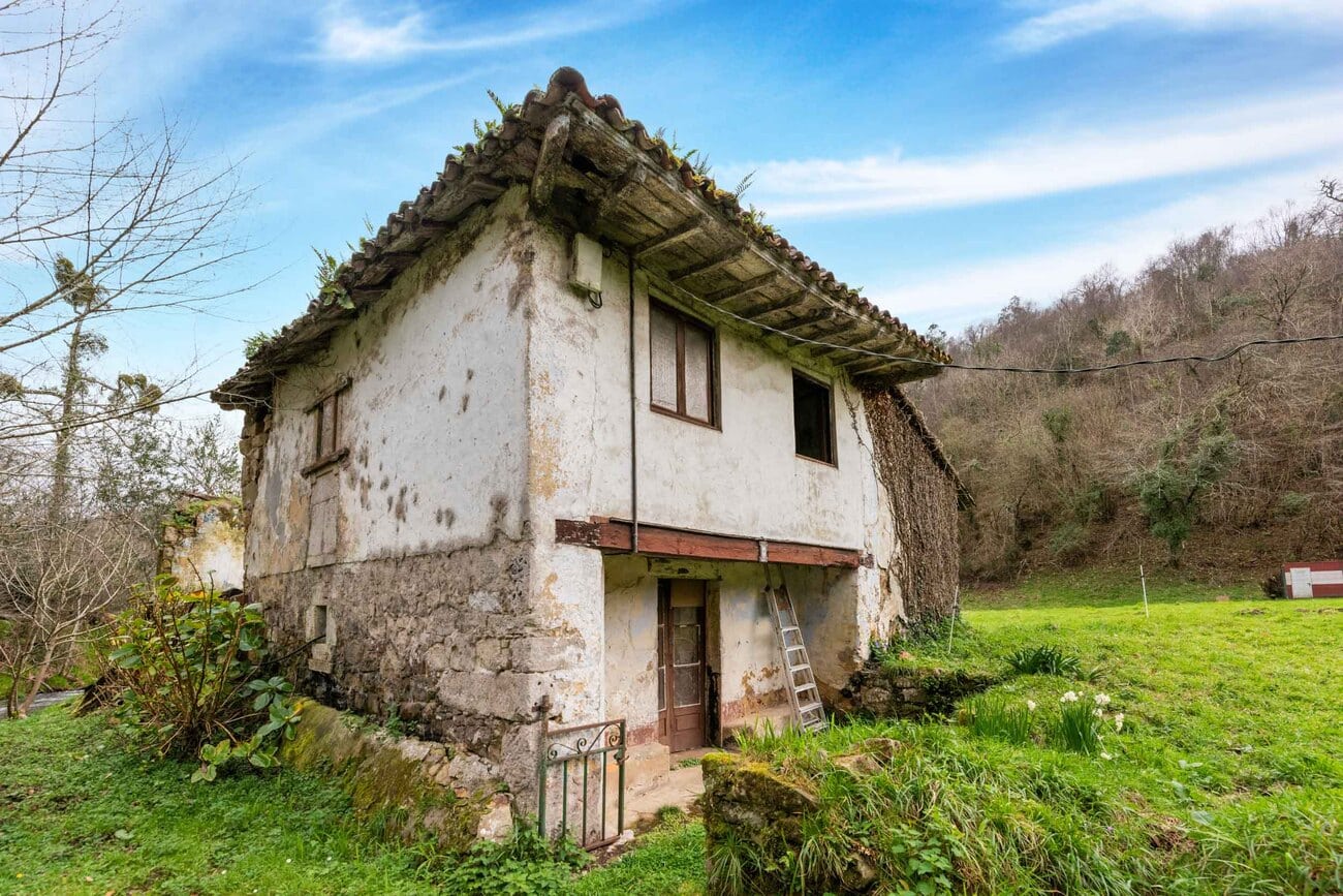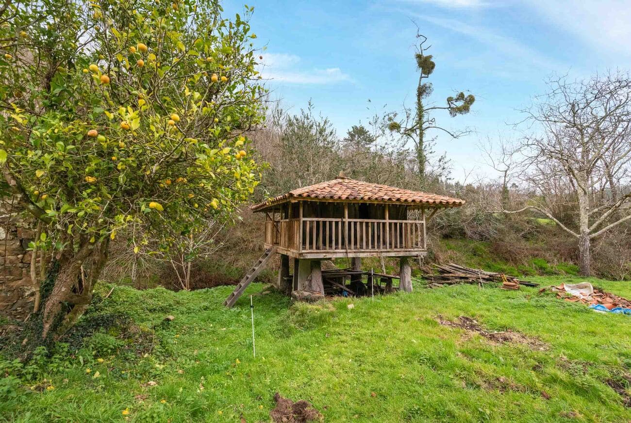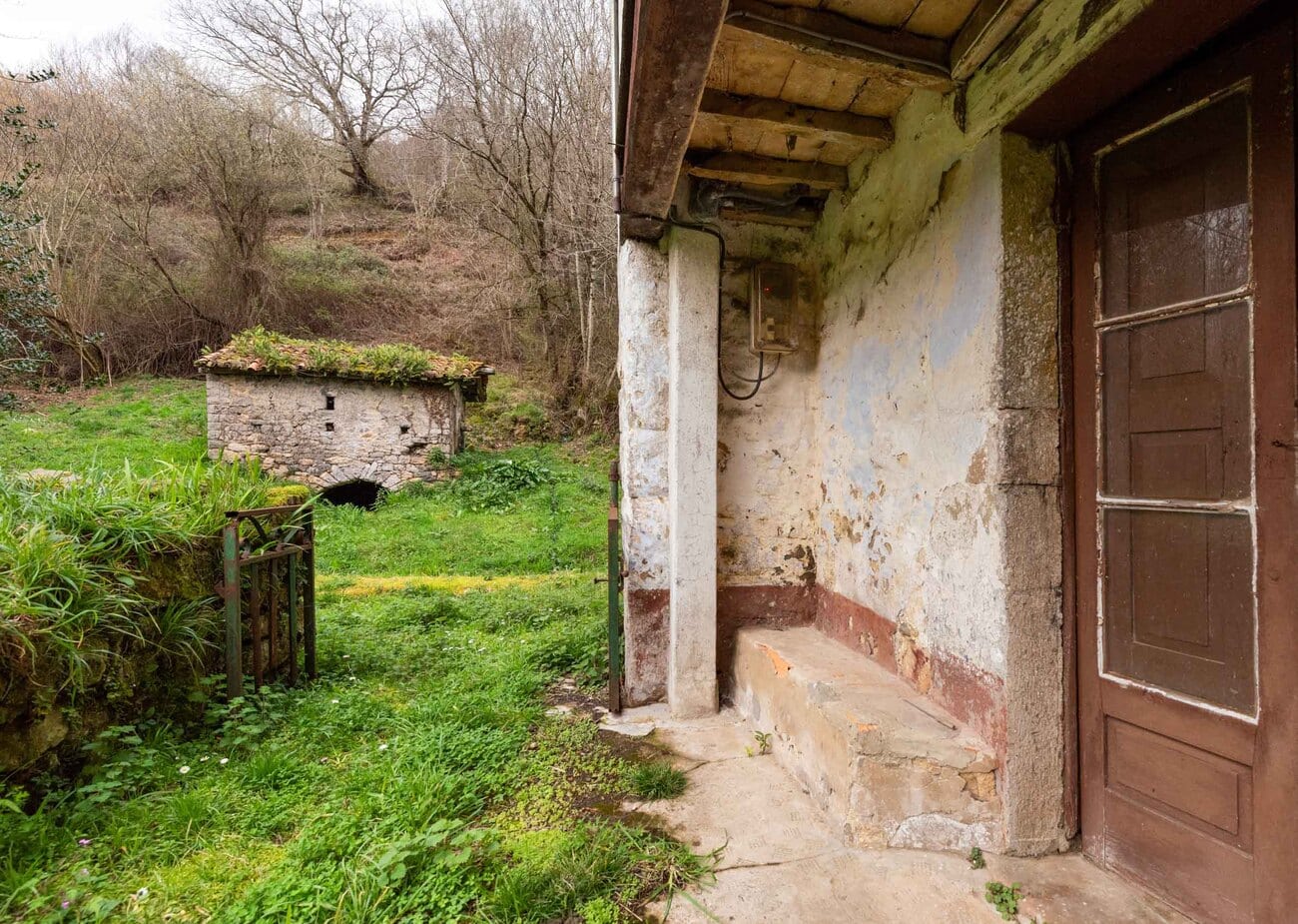 The estate, spanning two hectares, comprises five independent structures that require full renovation: a two-storey main house of 200 m², a recently restored traditional hórreo that preserves the local architecture, a stable, an old mill, and a barn used as an auxiliary annex. Altogether, they offer an approximate buildable surface of 300 m².