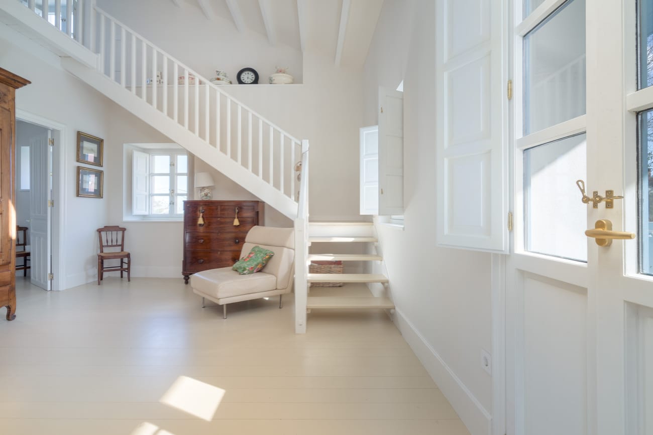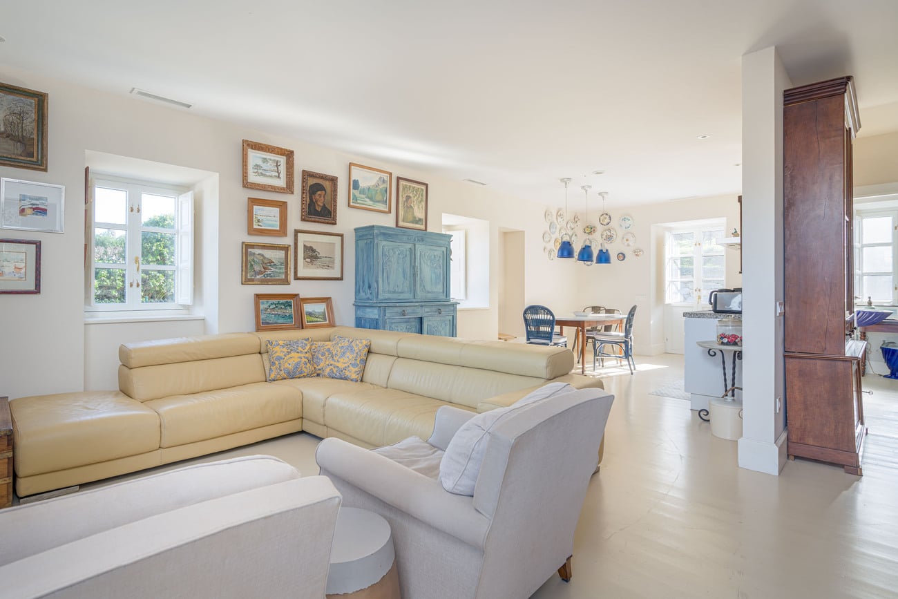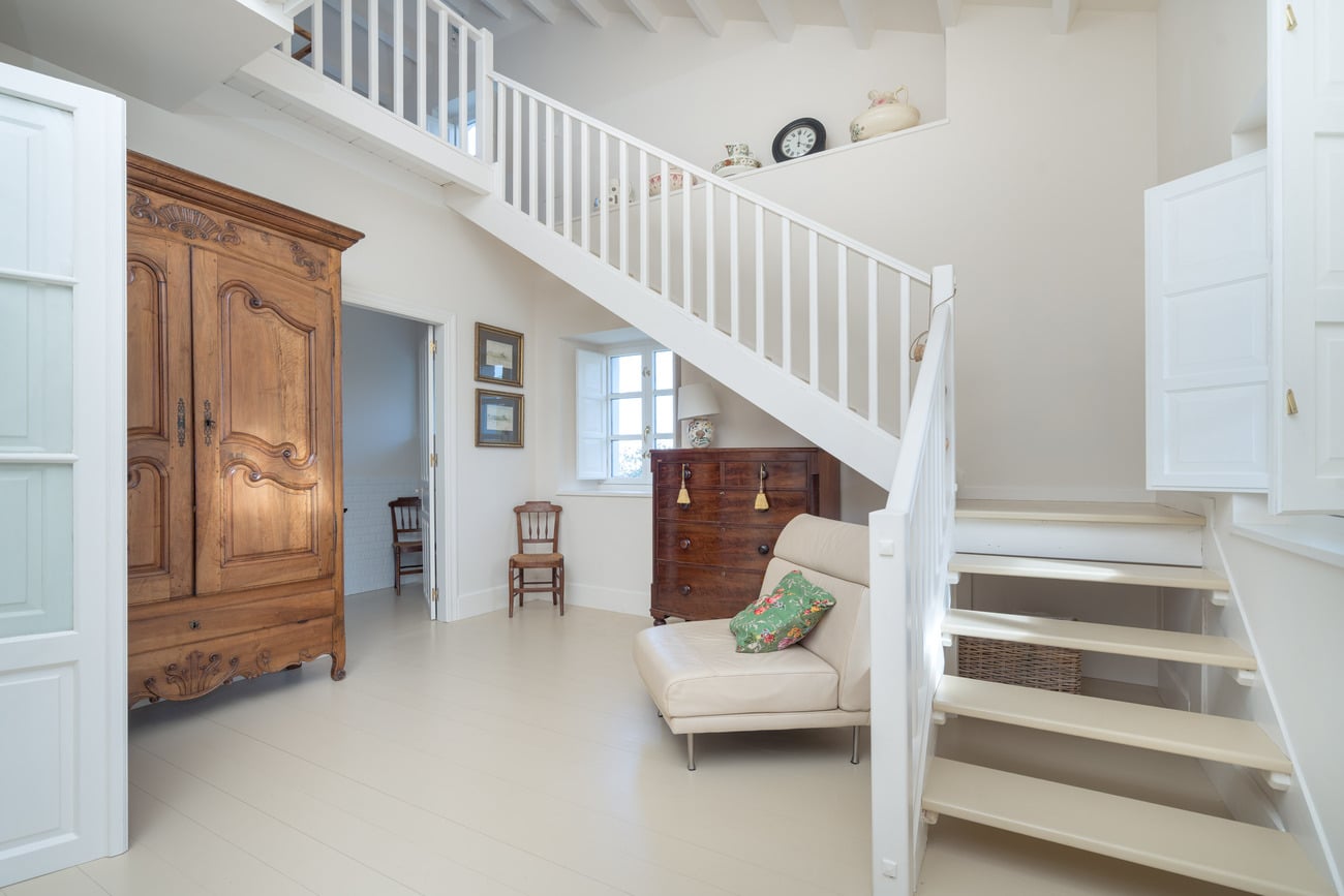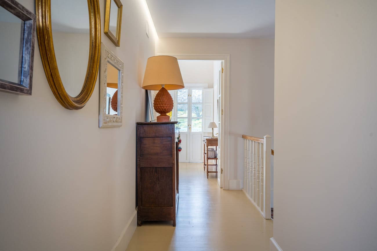 The first floor houses the most private area of the home, designed for rest and flexible use. It features three bedrooms, three bathrooms, a glazed gallery that adds character and brightness, a sitting room, and a loft space that can be used as a reading area, workspace, or additional relaxation zone, adapting to different needs.