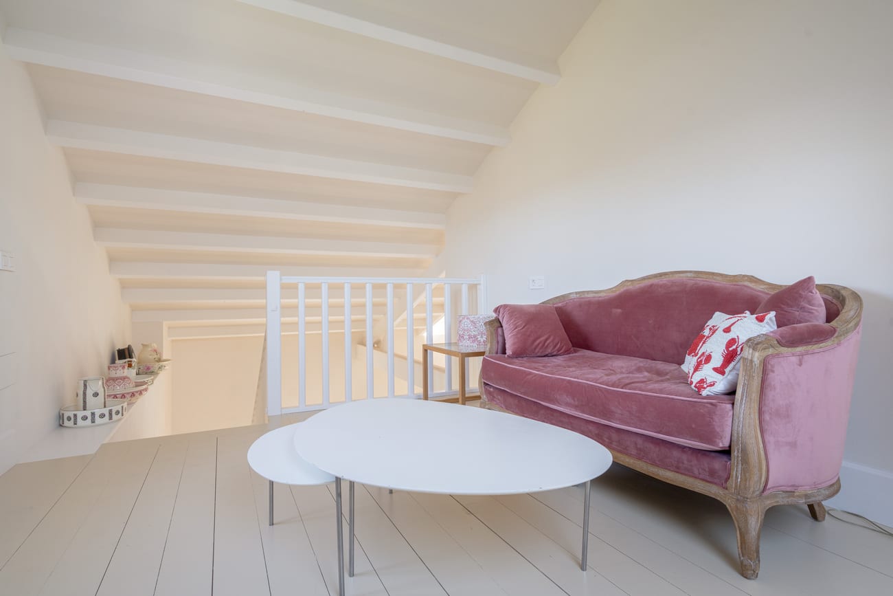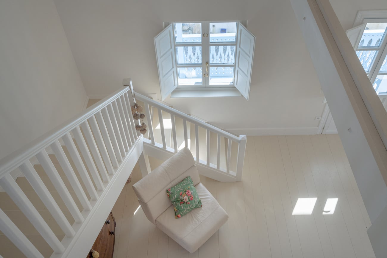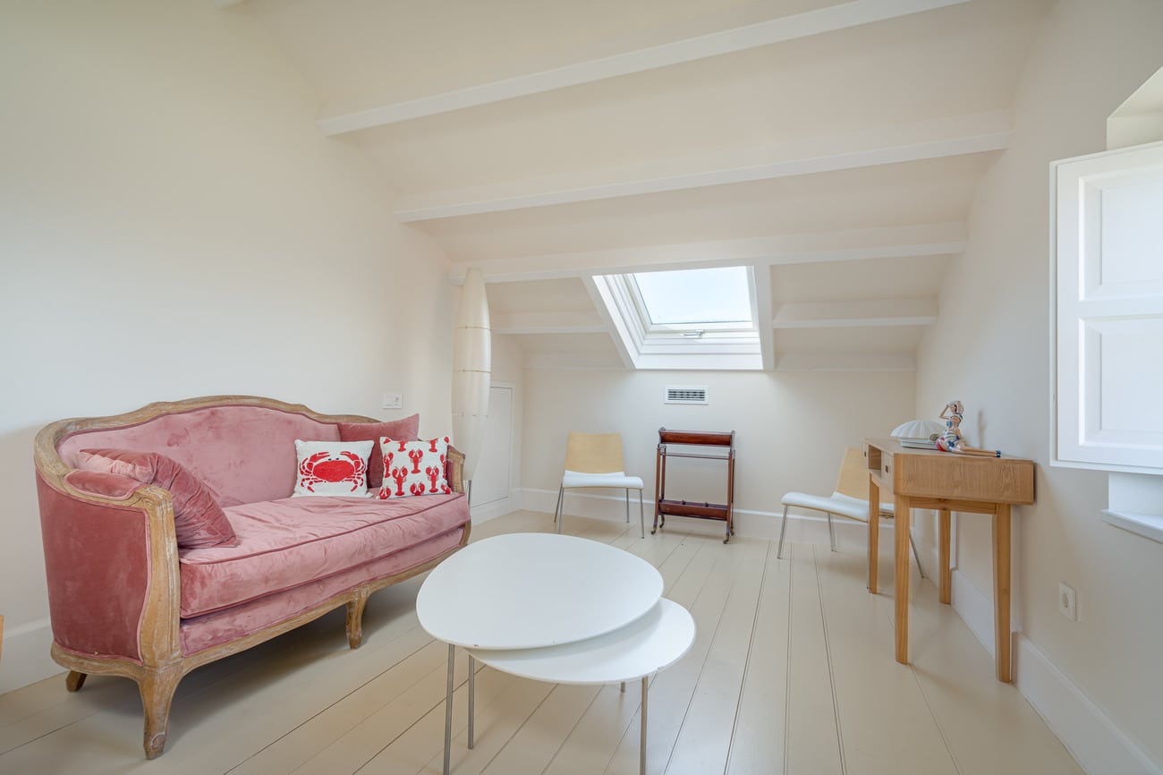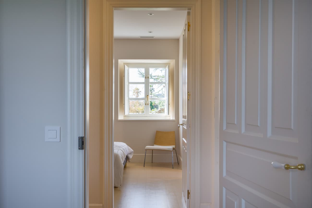The first floor houses the most private area of the home, designed for rest and flexible use. It features three bedrooms, three bathrooms, a glazed gallery that adds character and brightness, a sitting room, and a loft space that can be used as a reading area, workspace, or additional relaxation zone, adapting to different needs.