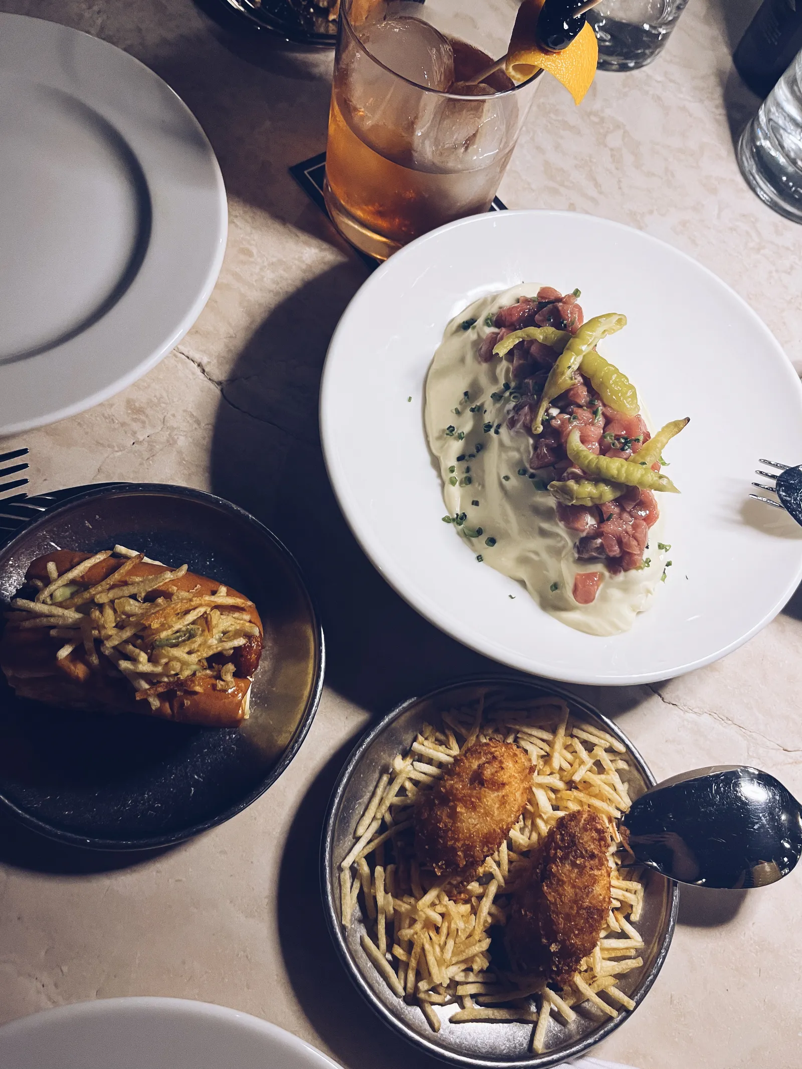 El barrio de Justicia se ha convertido en el place to be madrileño. Chitón promete convertirse en el nuevo restaurante de moda en Madrid. Es momento de degustar las delicias que ocupan su carta: una propuesta elaborada por el chef ejecutivo Miguel Vidal de la mano de MOM Culinary que rinde un homenaje, a su manera, a la gastronomía castiza. Entre los primeros bocados destacan la cabeza de ajo al horno, las croquetas de jamón ibérico, la ensaladilla con tartar de atún o el brioche de chistorra; este último es, sin duda, el entrante estrella de la carta. En el apartado de principales las grandes apuestas son la hamburguesa de vaca madurada, la merluza a la gallega o el solomillo ibérico con salsa de pimienta. Y lo que es obligatorio es pedir sus patatas fritas caseras con caviar y créme fraîche, una delicia incomparable.