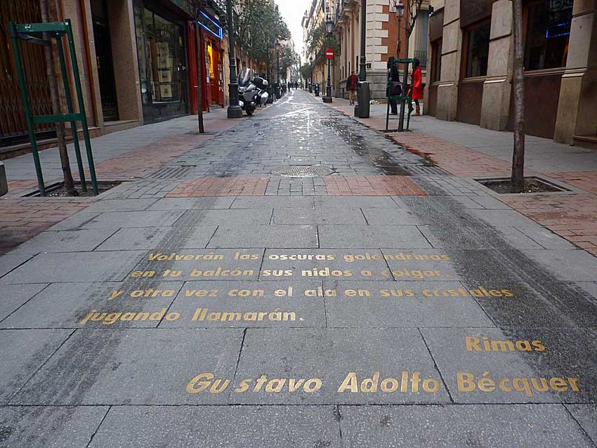 La historia de Madrid viene conformada por sus acontecimientos, urbanismo, gastronomía, cultura, pero también sin duda por la de cientos de personas ilustres que o bien nacieron en la capital, o bien vinieron a ella para desarrollar su obra. Entre las céntricas calles de Alcalá, Gran Vía y Sevilla por el norte; la calle de la Cruz y la calle de Atocha por el sur; el Paseo del Prado por el este; y la calle de la Virgen de los peligros por el oeste, se encuentra el denominado administrativamente como barrio de las Cortes (el origen del nombre corresponde a que en él se encuentra el Congreso de los Diputados). A esta zona se la conoce también como el barrio de Las Letras, precisamente en referencia a los grandes referentes literatos y sobre todo dramaturgos, que aquí habitaron: Lope de Vega, Quevedo, Góngora, o Cervantes. El autor del autor de Don Quijote de la Mancha pasó sus últimos días en una casa en la actual Calle de Cervantes, 2, donde hoy hay una placa conmemorativa. Diversos versos en las calles rinden homenaje a este autor, y a otros tantos de nuestro siglo de Oro. Pero este barrio se ha convertido en epicentro de la cultura en general, por eso sus calles están llenas de referencias a otros tantos artistas que no vivieron aquí pero que han sumado al patrimonio cultural español, así como de modernas galerías de arte.
