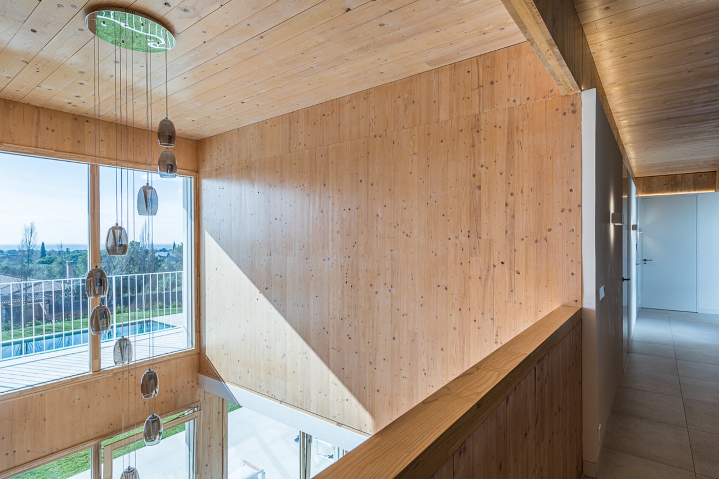 Esta casa de Las Rozas cuenta con esta certificación y fue premonitoriamente terminado a principios de 2020. La arquitecta Clara Ulargui utiliza los recursos de la arquitectura bioclimática, por ejemplo con una estructura de madera certificada de bosques sostenibles. La iluminación que aprovecha al máximo la luz natural y es muy importante el empleo de materiales naturales, evitando cualquier toxicidad química.