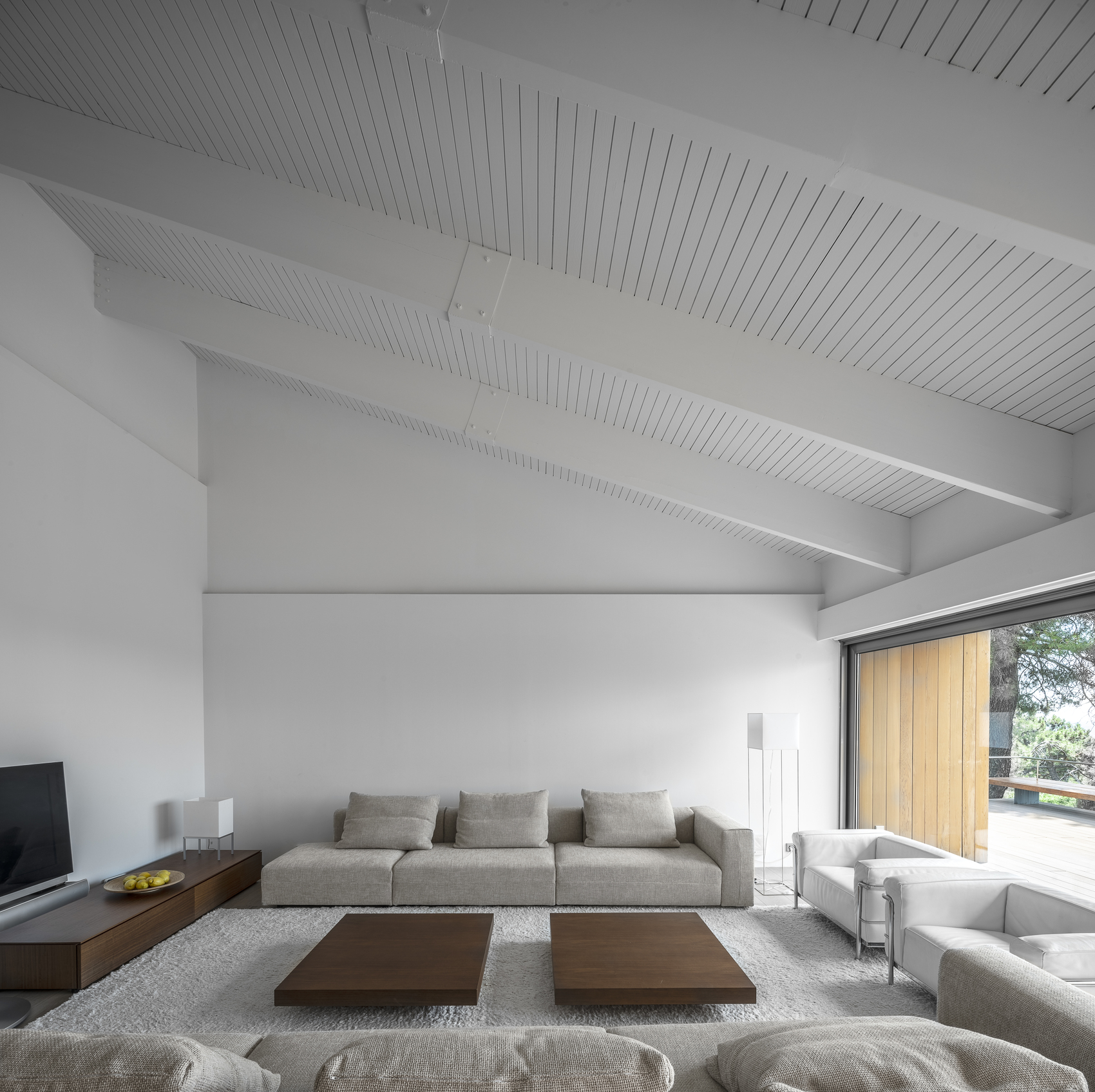 La casa se inserta en un paraje natural con dobles miradas desde cada estancia a dos grandes ventanales enfrentados que incorporan en “fuga visual” cada estancia con la naturaleza circundante.