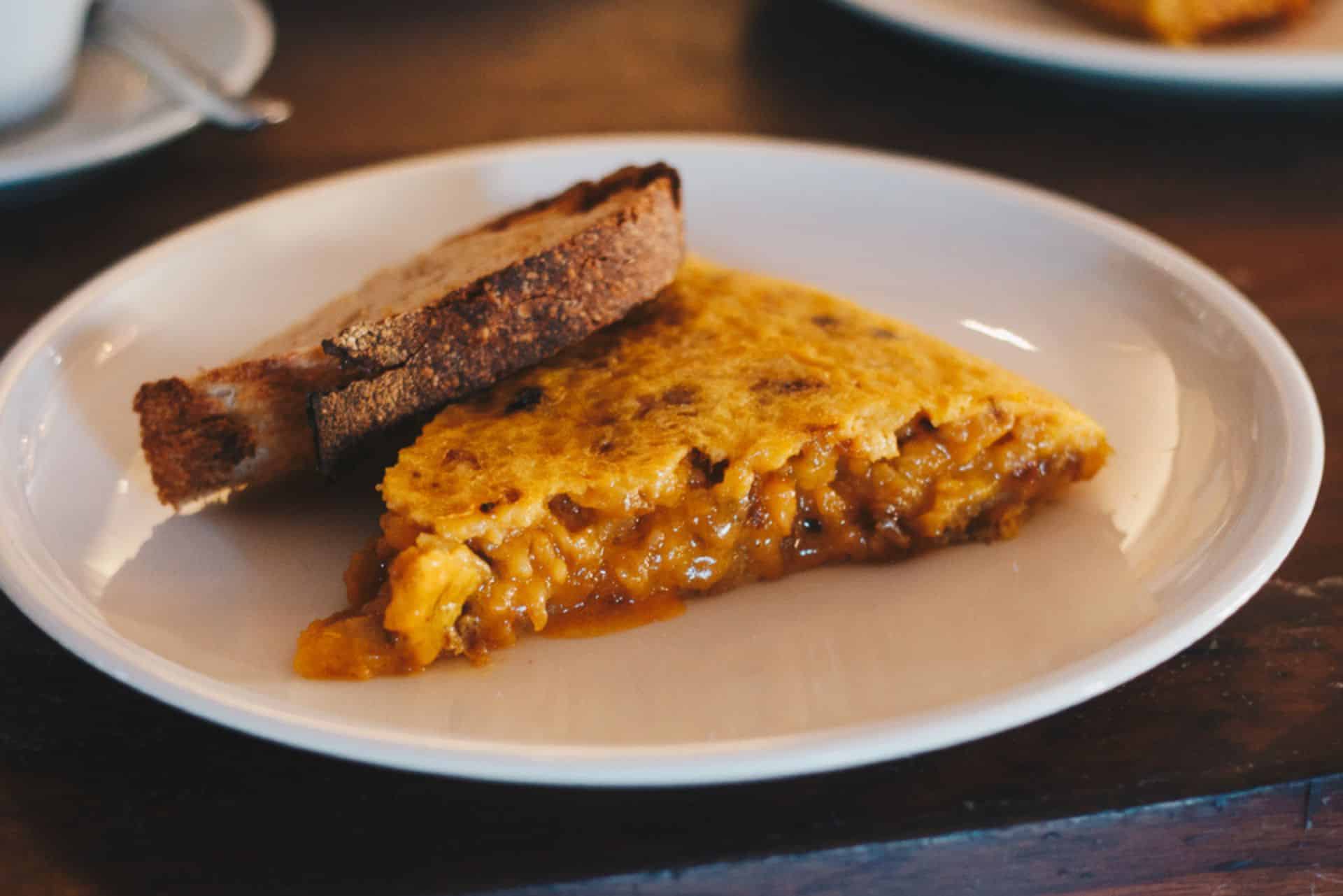 La clave está en su tortilla de patata con cebolla caramelizada, una versión melosa y llena de sabor que se sirve habitualmente sobre pan, casi como un pequeño montado. El contraste entre la dulzura de la cebolla y la textura cremosa del interior ha convertido esta elaboración en una de las más celebradas de la ciudad. Con el paso del tiempo, Juana La Loca ha logrado algo poco común: que su tortilla sea ya parte del imaginario gastronómico de Madrid y una parada fija en cualquier ruta dedicada a este clásico.