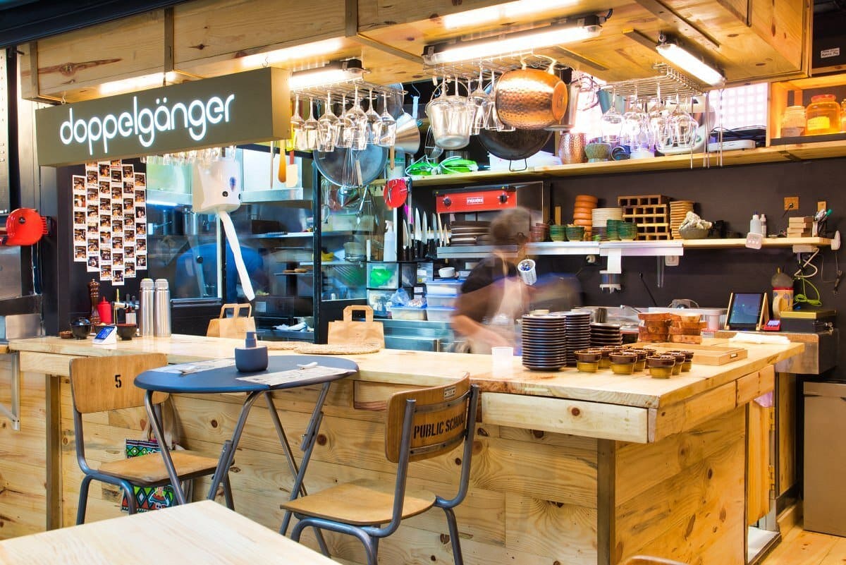 Entre el bullicio del Mercado de Antón Martín hay un puesto que no se parece a ninguno de los anteriores y justo ahí está su encanto. Doppelgänger no grita, no busca llamar la atención a base de ruido o picante, pero te atrapa igual. Lo hace con aromas más sutiles, con platos que mezclan mundos y con una sensación clara desde el primer bocado: aquí se cocina con cabeza, con viaje y con mucha curiosidad.