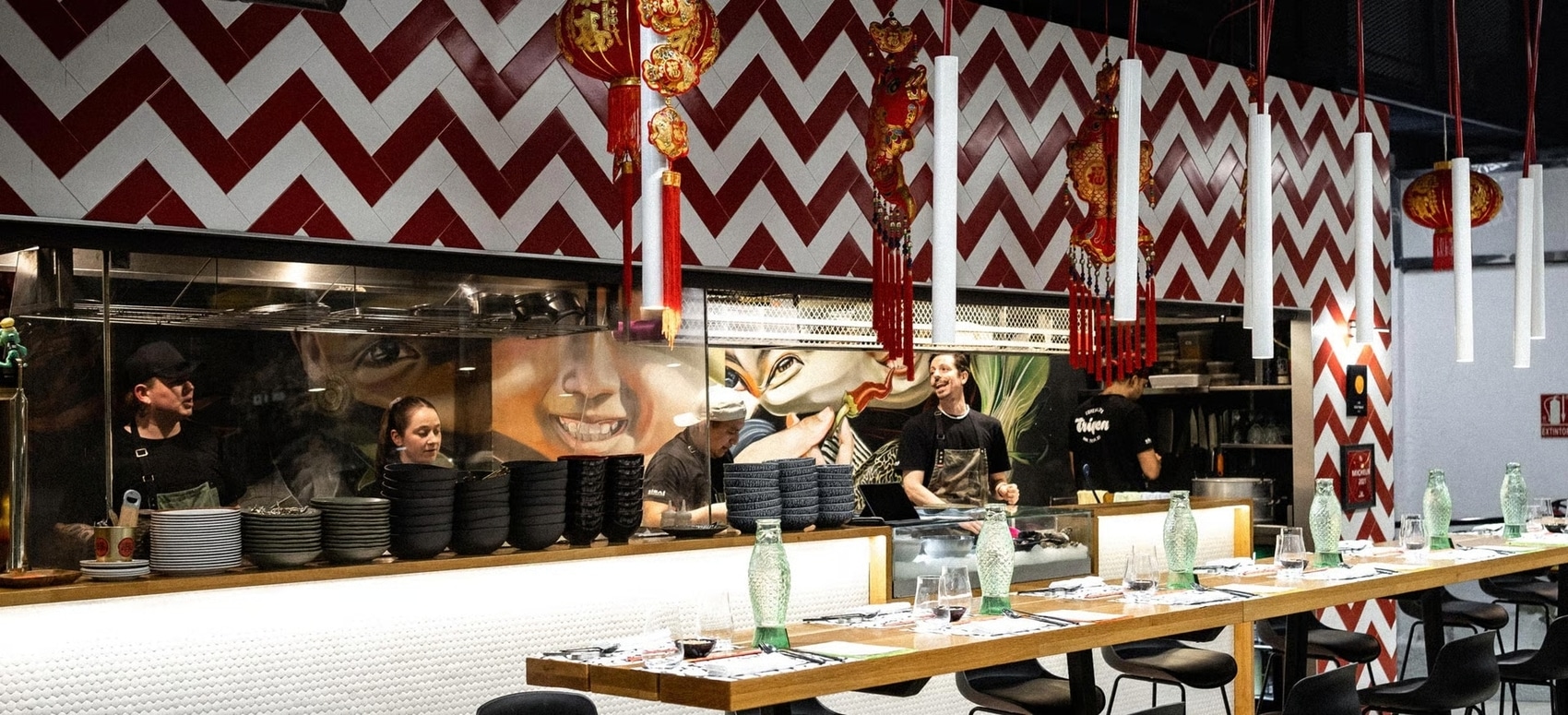 En cuanto te acercas a Kitchen 154 el aroma del curry caliente, a lima, a chile recién machacado, el picante que se intuye en el aire y el sonido rápido de la cocina anuncian que aquí se viene a jugar fuerte. Su propuesta, inspirada en el street food del Sudeste Asiático es directa, intensa y sin concesiones: platos pensados para comer al momento, con las manos o con palillos y con una sonrisa inevitable después del primer bocado comentando con quien tienes al lado si “pica mucho” o “pica lo justo”.