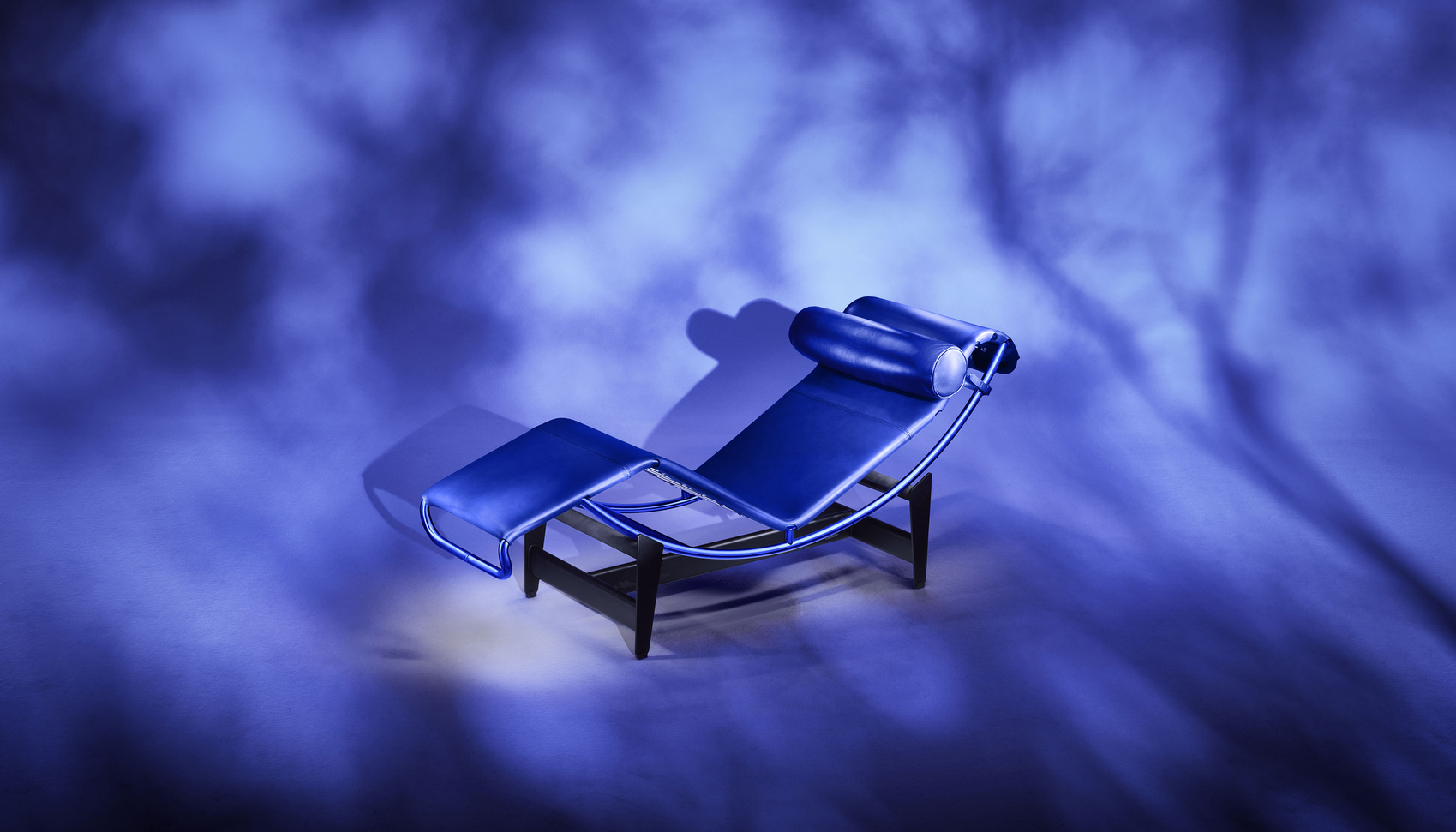 La icónica Chaise Longue de Le Corbusier, Jeanneret y Perriand está disponible en colores azul, rojo y verde. Foto: Luca Merli.