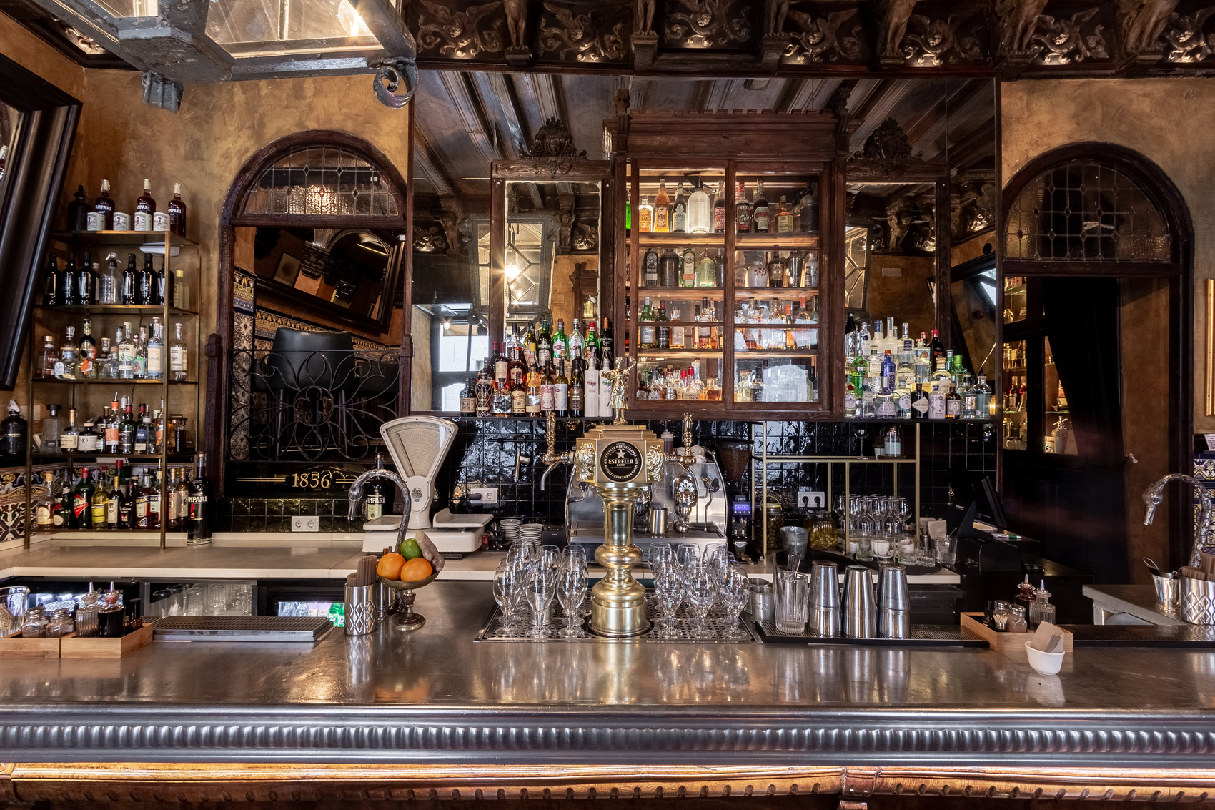 Viva Madrid es un pedazo vivo de la historia de la ciudad. Fundada en 1856, su mítico interior con azulejería de la Casa Mensaque, una barra esculpida en madera y un techo coronado por arpías artesanales, transporta al visitante a otra época. En su planta superior, el “Dark Side” recrea el ambiente de un bar madrileño de los años 20, escenario perfecto para tertulias y noches interminables.