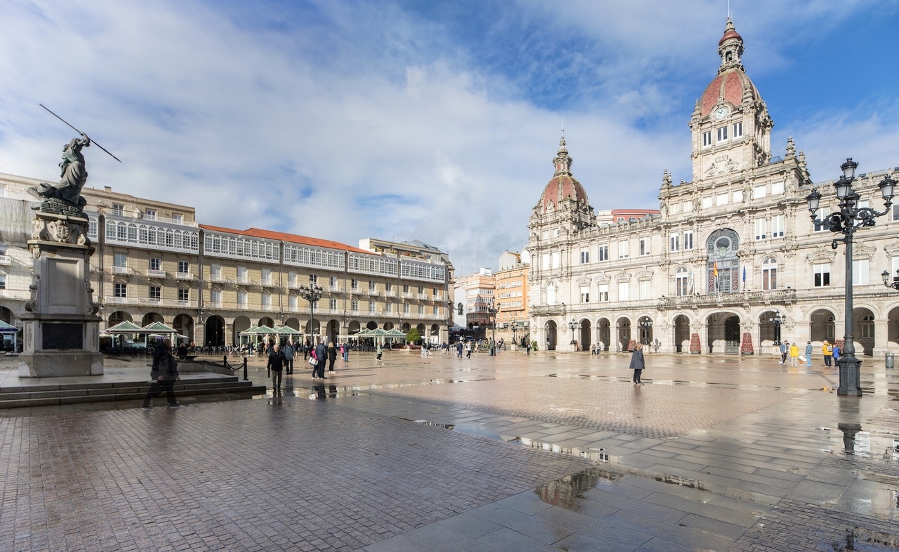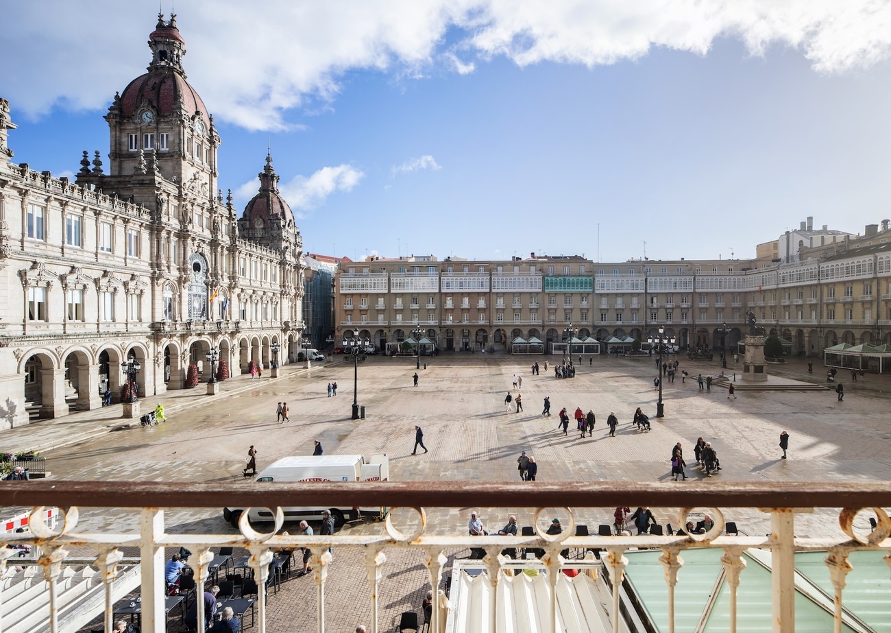 La Plaza de María Pita se sitúa en pleno corazón de A Coruña, frente al frente marítimo y a escasos metros del puerto y del casco histórico. Actúa como eje institucional, urbano y simbólico de la ciudad, conectando de manera natural la zona histórica con los principales recorridos comerciales y culturales. Rodeada de edificios porticados y presidida por la fachada del Ayuntamiento, la plaza concentra algunos de los hitos más representativos de A Coruña y ofrece una relación directa con el mar, algo poco habitual en espacios urbanos de esta escala. Su localización privilegiada permite disfrutar de una vida urbana activa y representativa, con todos los servicios, restaurantes y espacios culturales a pocos pasos, en uno de los enclaves más singulares y reconocibles de Galicia.