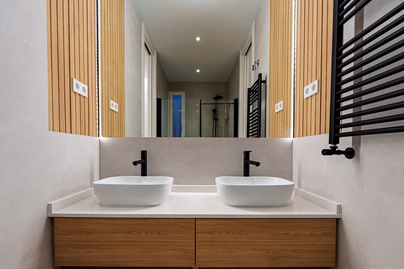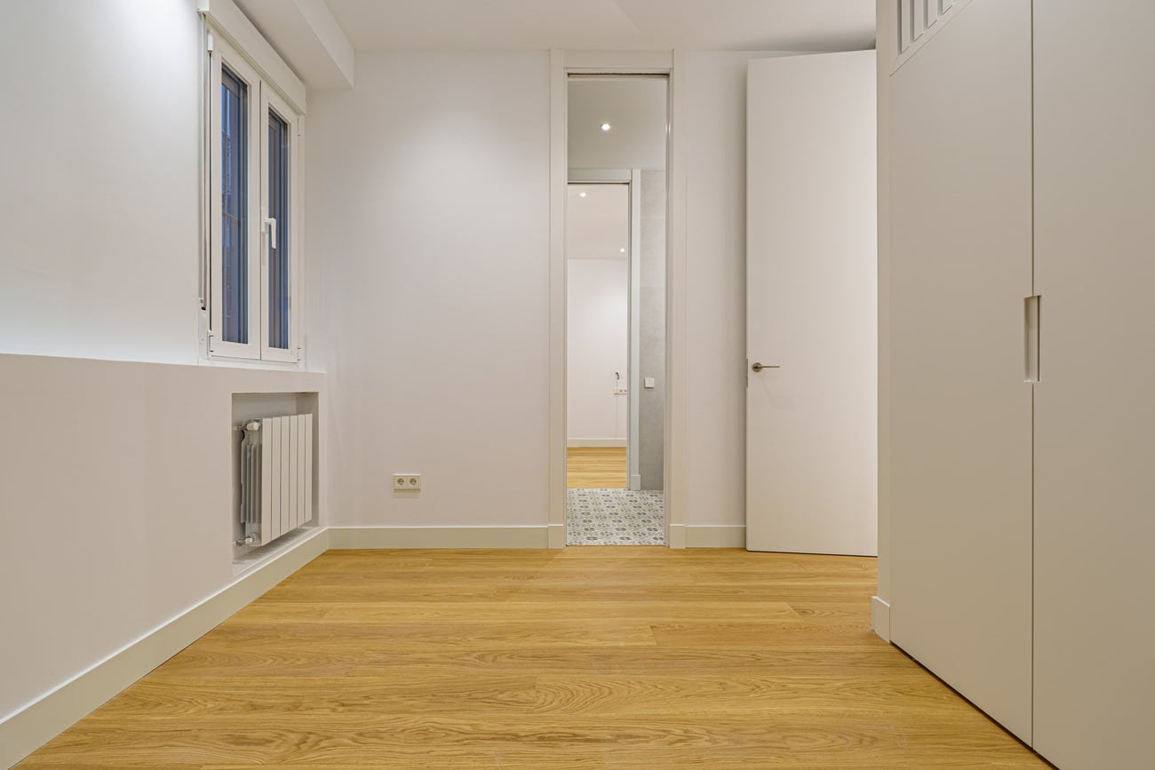 La propiedad presenta un proyecto cuidadosamente diseñado que respeta la arquitectura original de un edificio histórico de Madrid, donde cada intervención dialoga con el pasado sin renunciar al confort contemporáneo. Las columnas de madera vistas, los techos altos y la continuidad del suelo de madera natural definen el carácter del espacio desde el primer momento, aportando autenticidad, elegancia y una agradable sensación de amplitud.