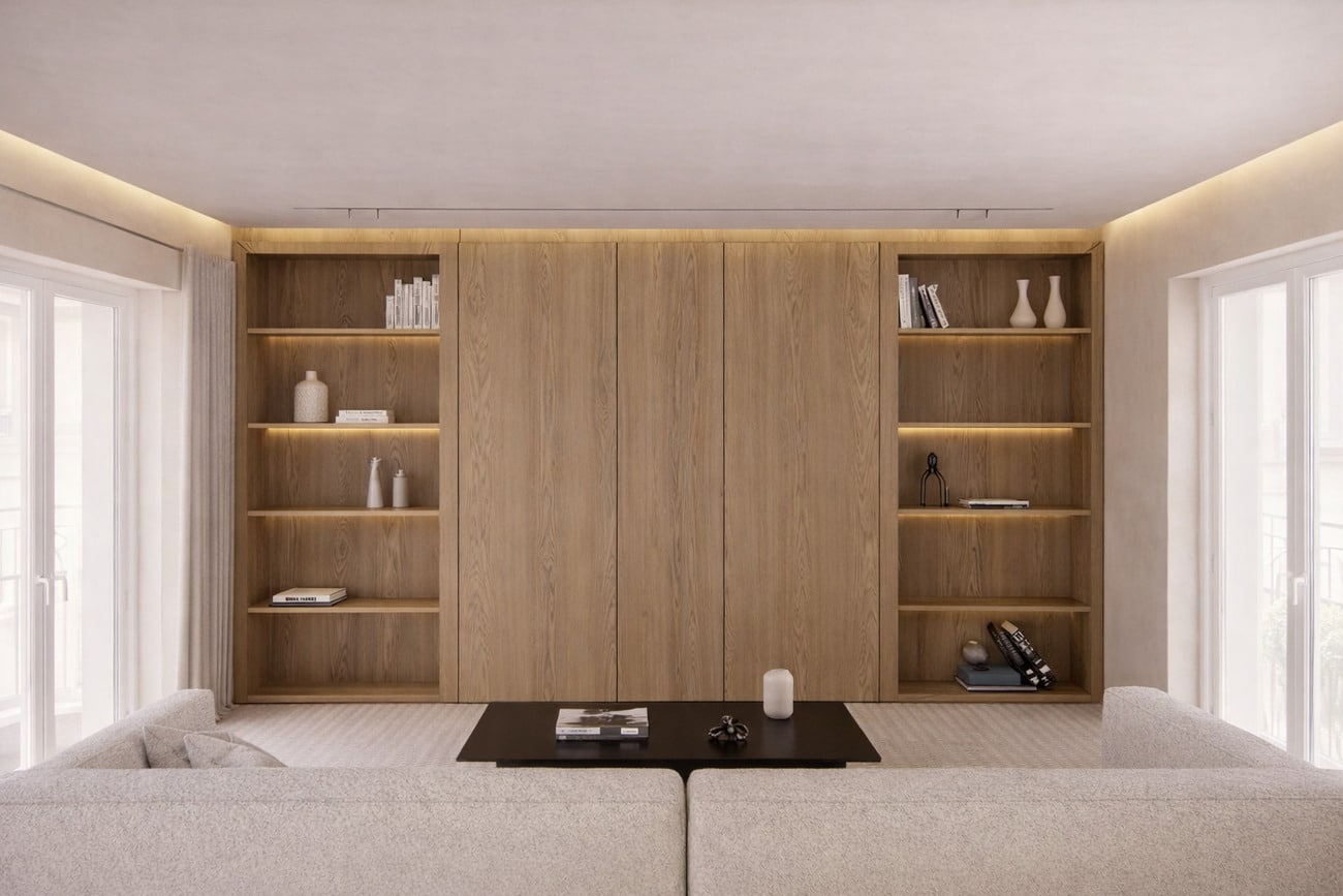 El proyecto de reforma toma como eje los ocho balcones, auténtico corazón de la propiedad. Todo se organiza en torno a ellos, permitiendo que la luz y la relación con el exterior definan cada espacio.