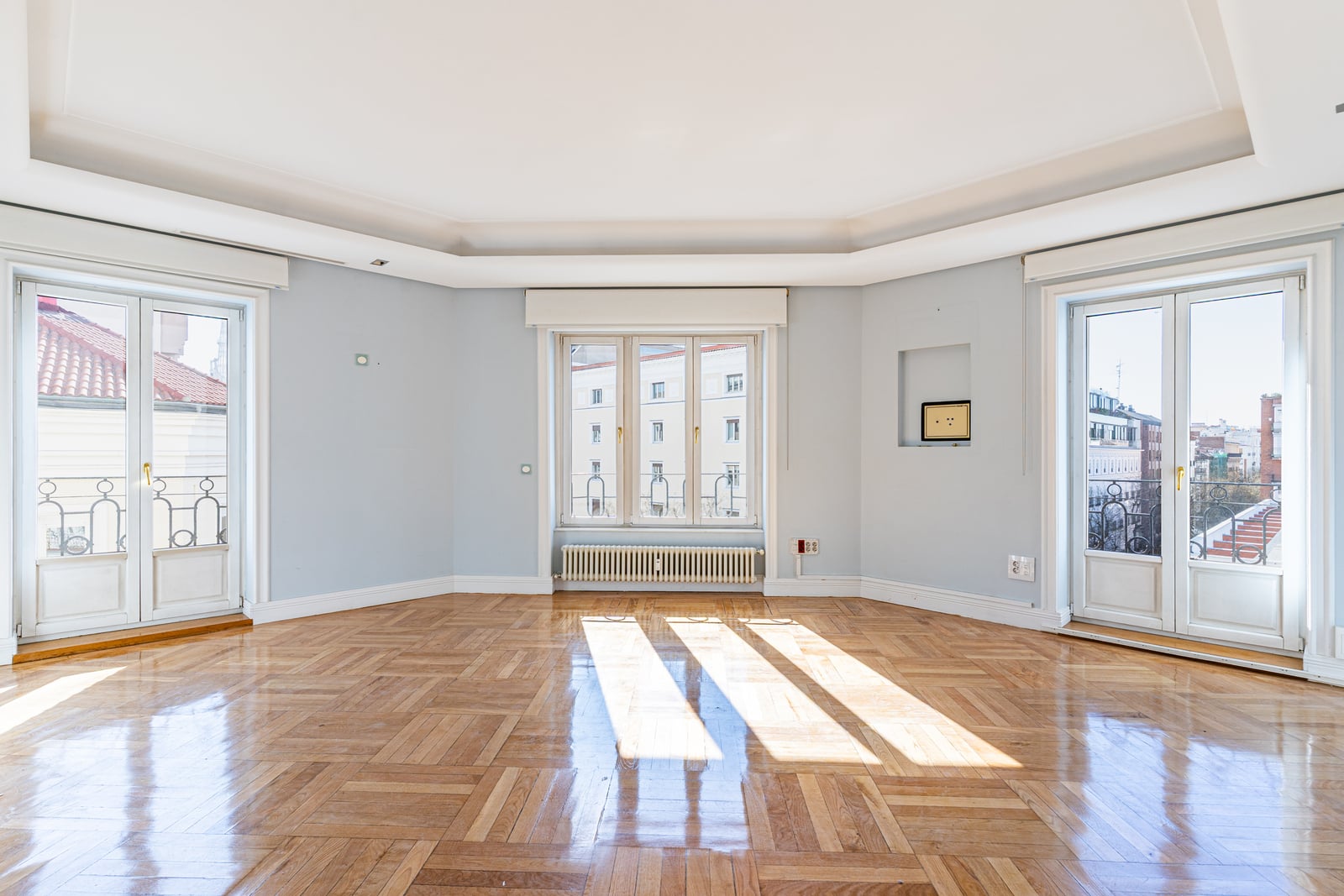 En una de las direcciones más codiciadas de Recoletos, esta propiedad ocupa un privilegiado esquinazo dentro de una finca clásica que conserva intacta la elegancia de la arquitectura madrileña. Un piso con presencia, luz y grandes proporciones que ofrece el punto de partida perfecto para concebir una residencia verdaderamente excepcional.