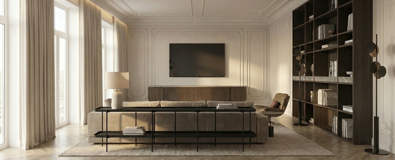 Con 250 m², la vivienda se articula a través de estancias amplias y proporcionadas, donde la altura de techos, la luz y la nobleza de los materiales construyen una atmósfera serena, elegante y atemporal. La reforma ha sido concebida con un cuidado especial por la proporción de los espacios, el aislamiento térmico y acústico y la calidad de los acabados, generando una vivienda pensada para el confort y el bienestar en el día a día.
