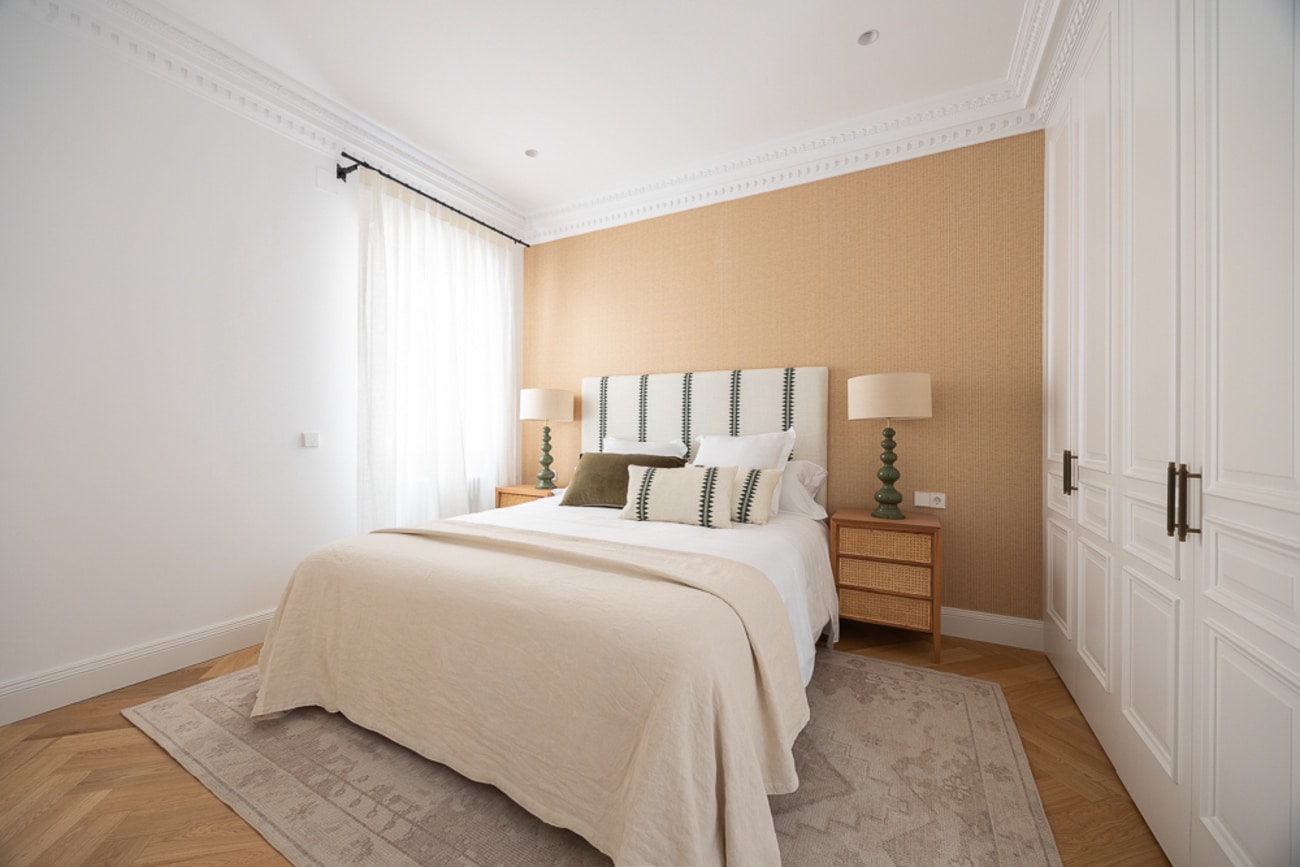 Magnífico piso en tercera planta de finca representativa del barrio de Salamanca. Recién reformado y se entrega amueblado.