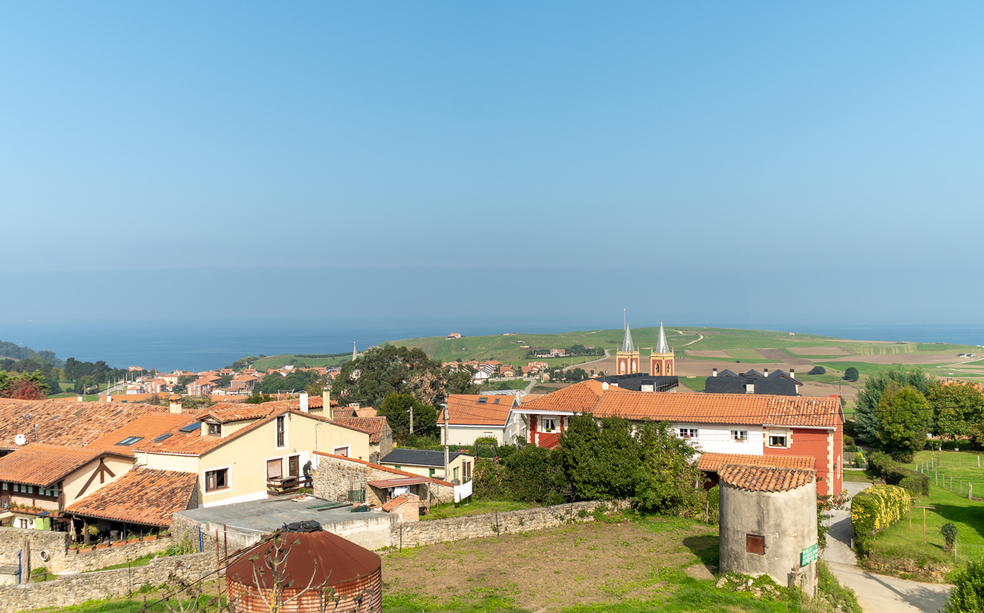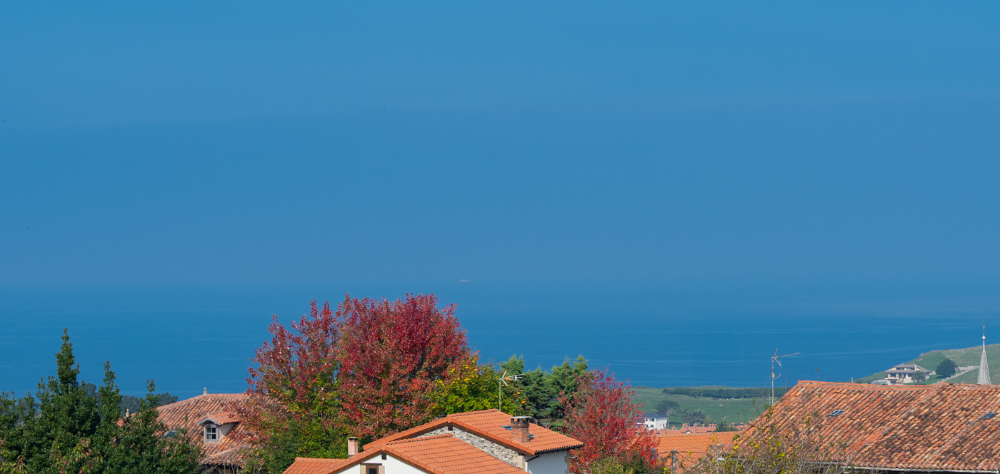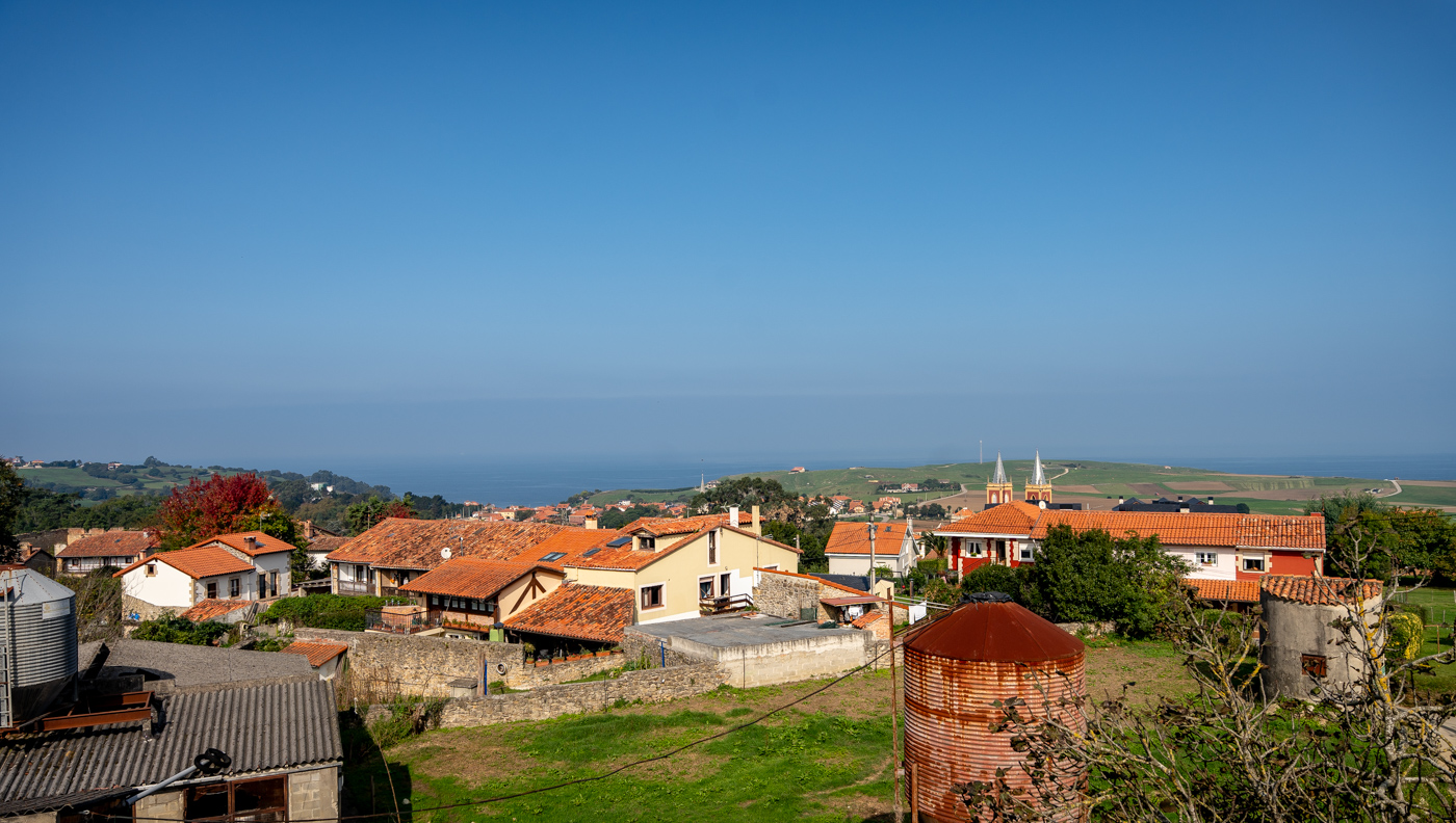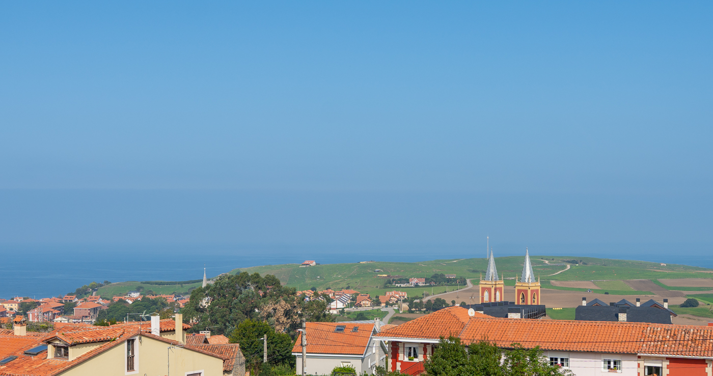 La orientación sur y oeste garantiza una luminosidad natural durante todo el día, mientras que las vistas al mar, las campiñas y el caserío de Santa Ana aportan una atmósfera serena, típica de esta zona entre Novales y Cóbreces.