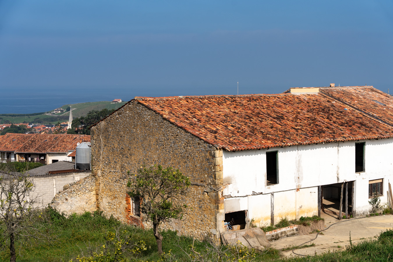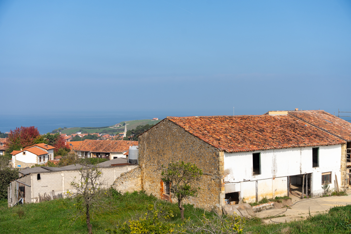 Su sólida estructura de 1932 y su ubicación privilegiada —con vistas abiertas al Cantábrico y a las suaves colinas del interior— la convierten en una oportunidad excepcional para crear una vivienda única.