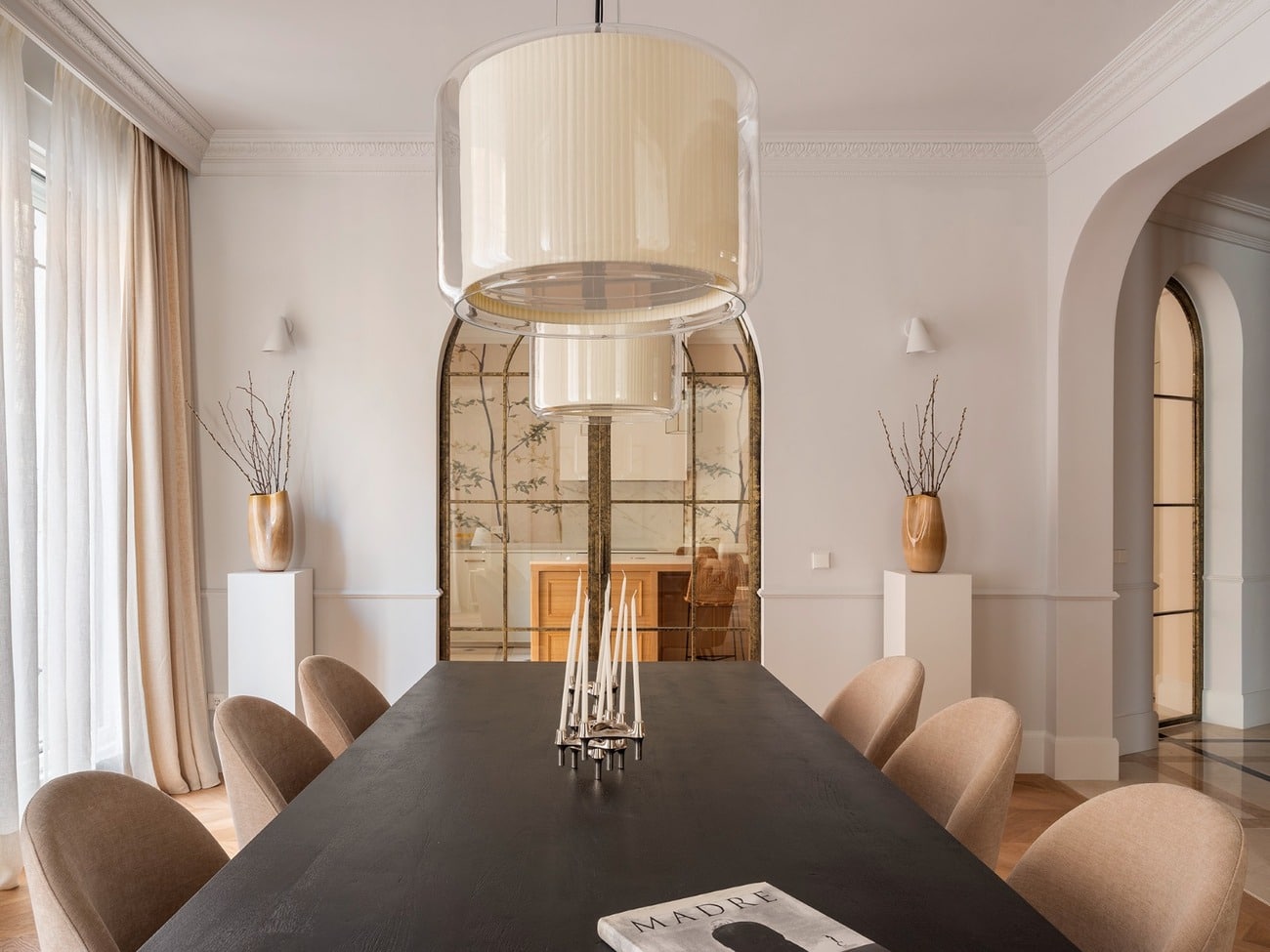 En el prestigioso barrio de Almagro, en pleno corazón de Chamberí, se alza esta extraordinaria propiedad de amplios espacios y diseño impecable, fruto de una reforma cuidada hasta el último detalle.