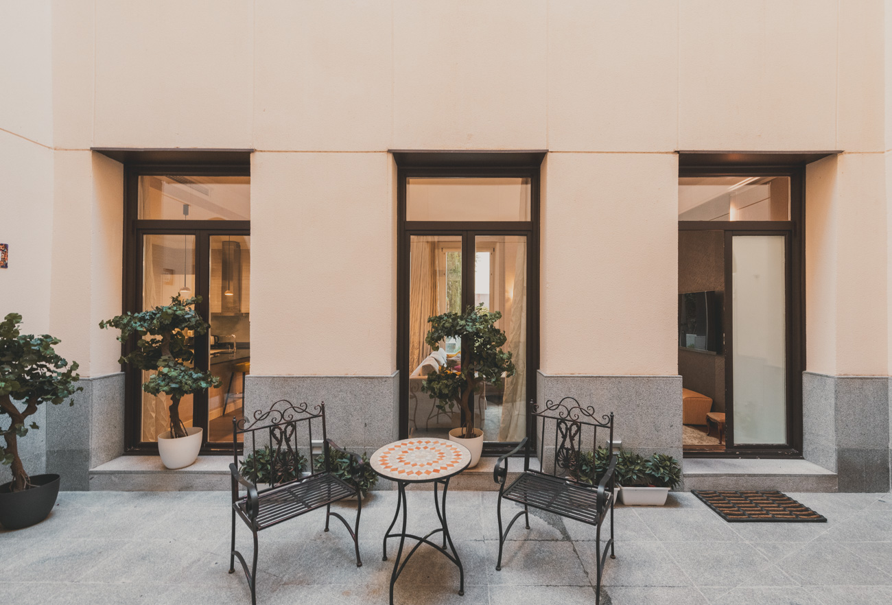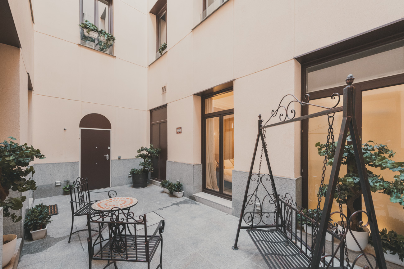 El privilegio de un jardín y patio privativo a dos pasos del barrio de Las Cortes