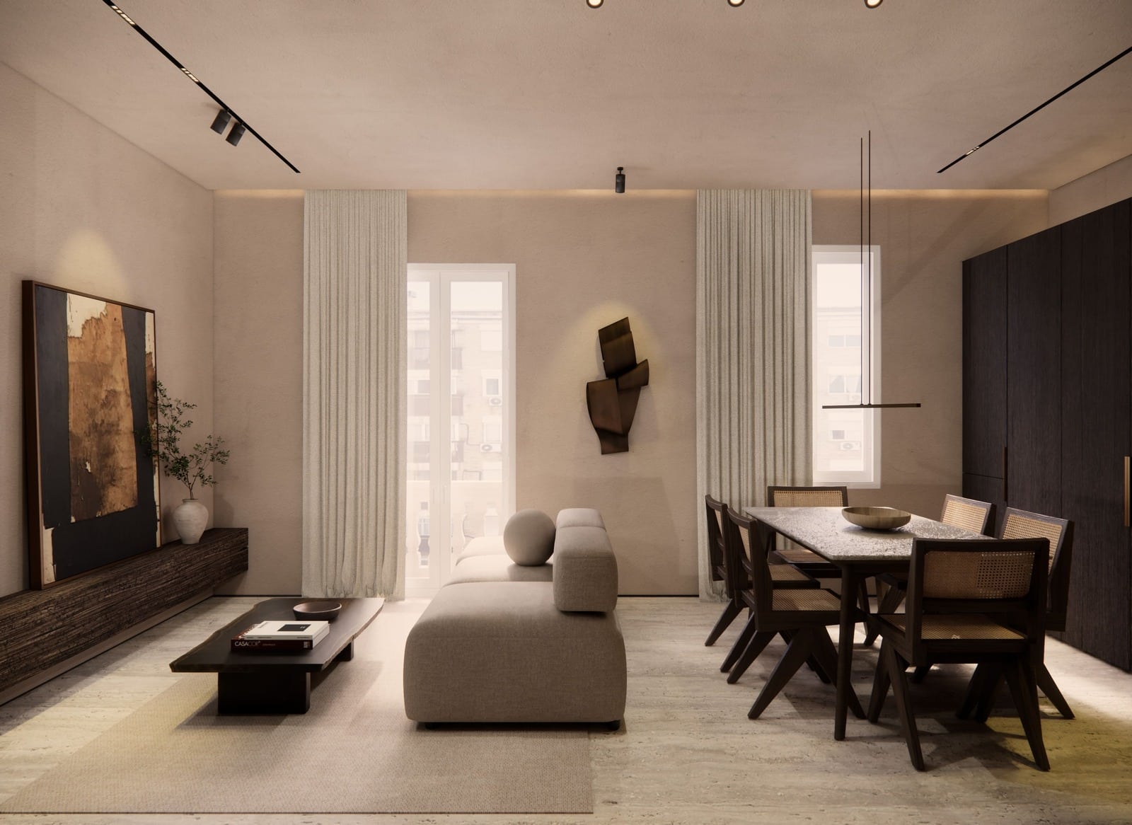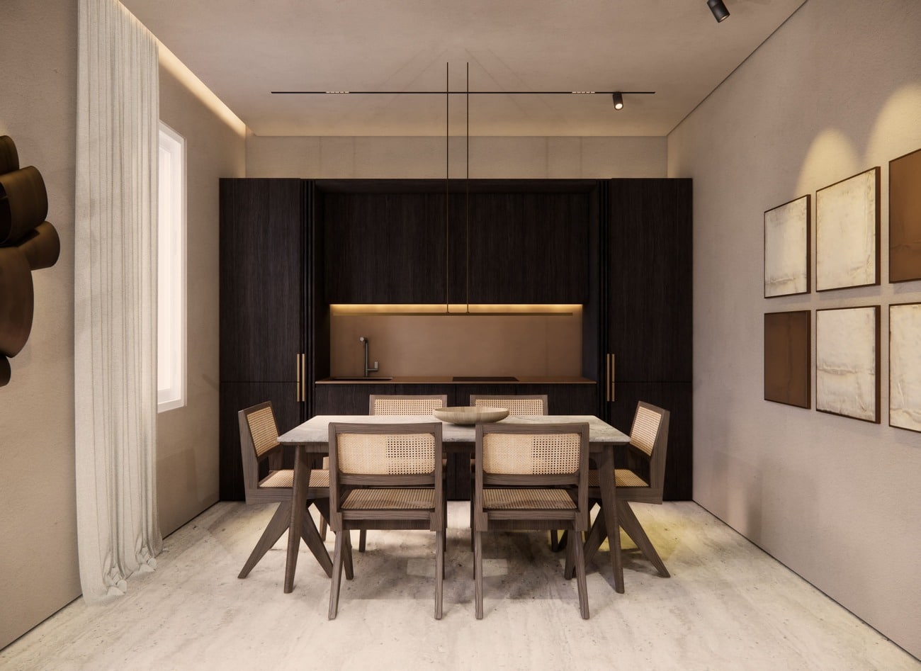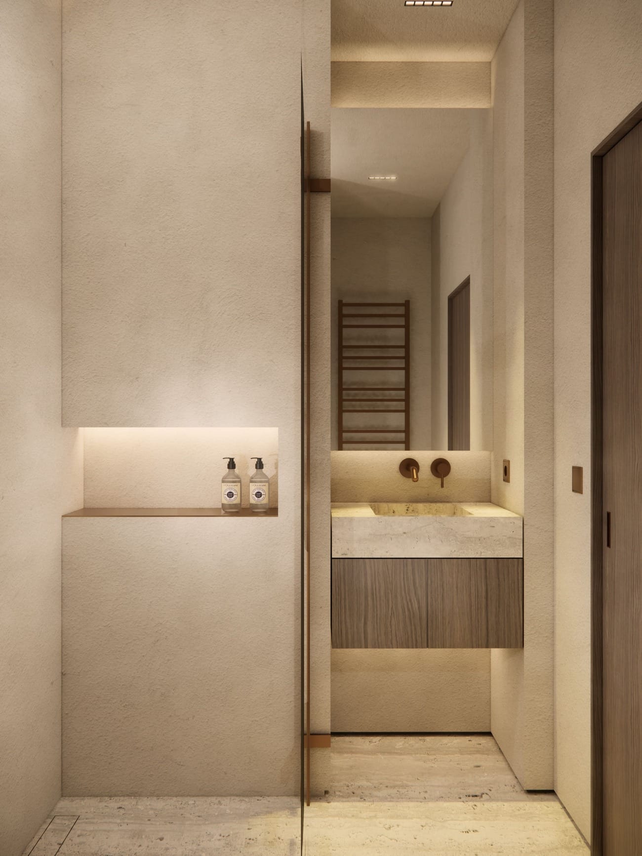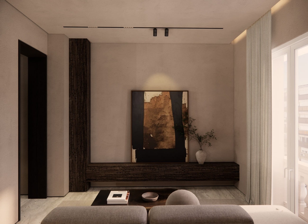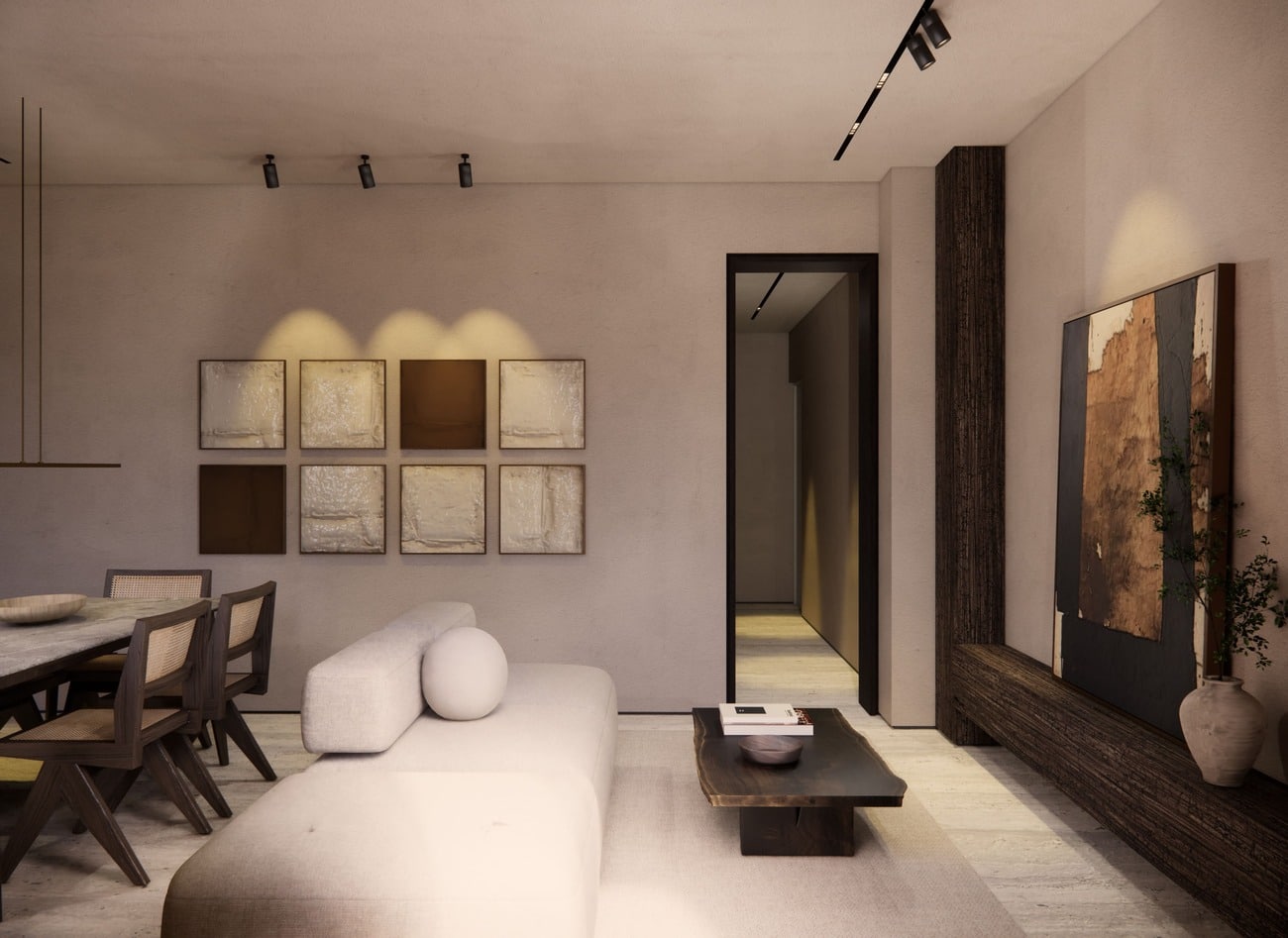 Al entrar, un recibidor equilibrado marca el inicio de una distribución pensada para una vida moderna y fluida.