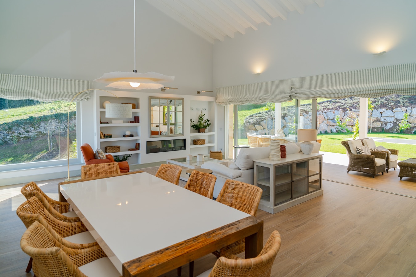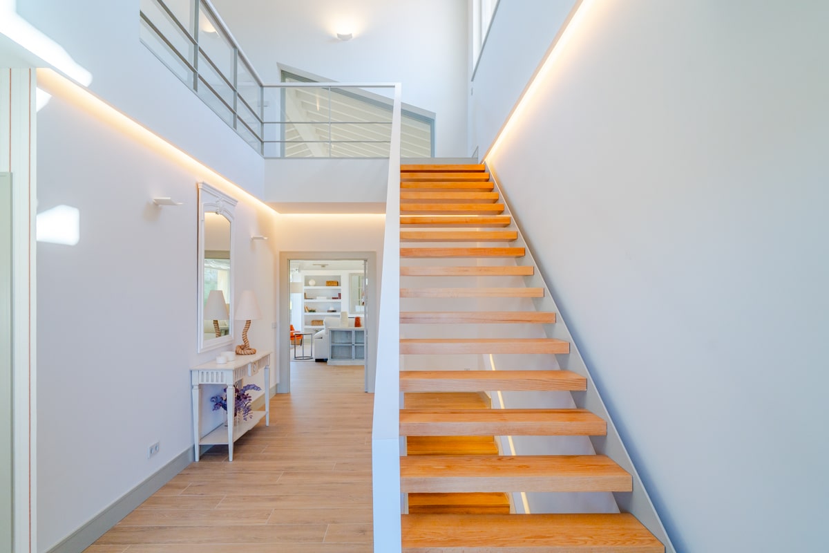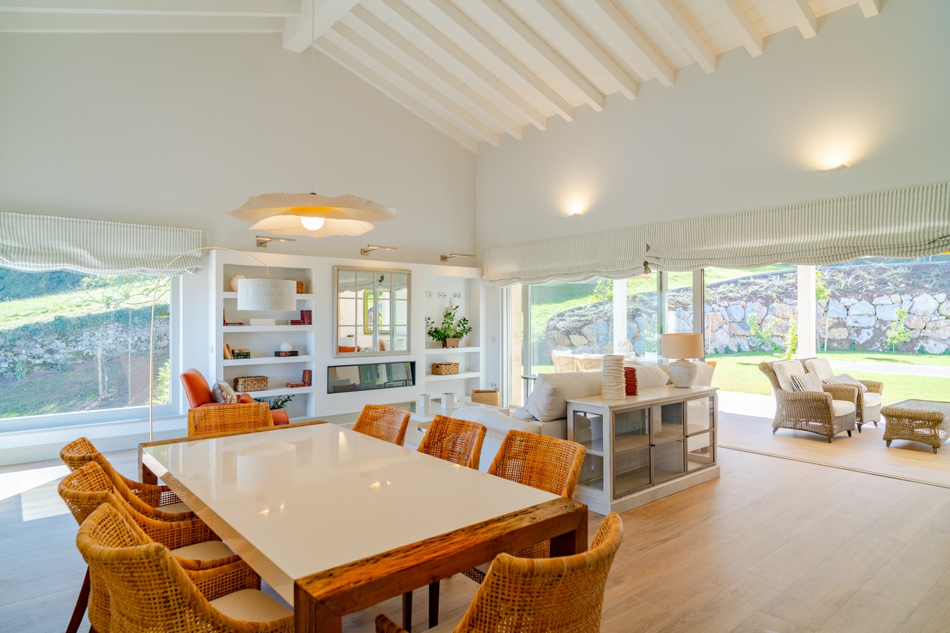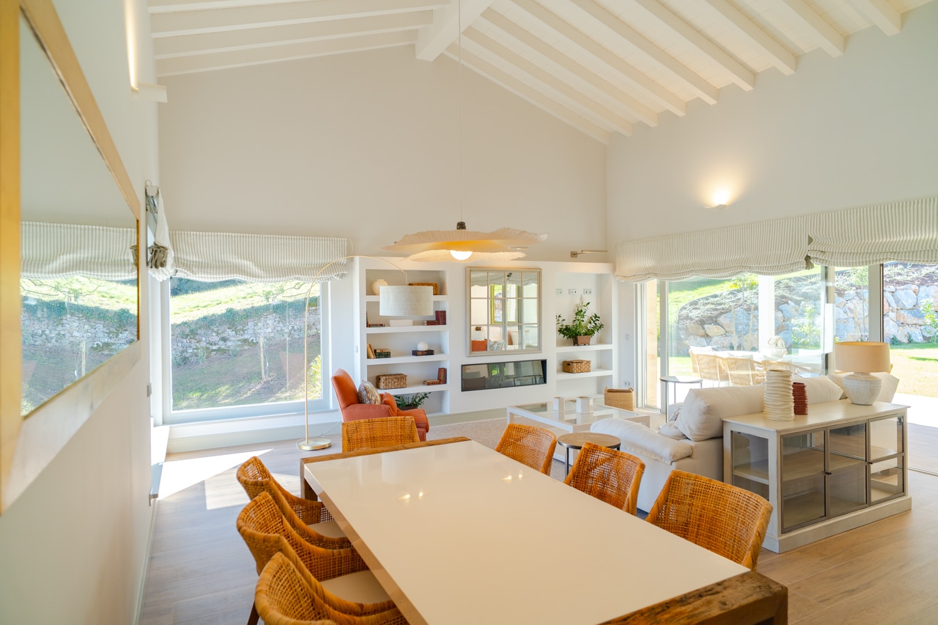 Esta casa invita a vivir despacio: cada estancia respira serenidad, bañada por una luz natural que realza los detalles de un interiorismo pensado al milímetro. Las texturas de la piedra y la madera dialogan con el entorno, mientras la tecnología se integra con discreción para ofrecer confort y eficiencia sin romper la armonía visual.