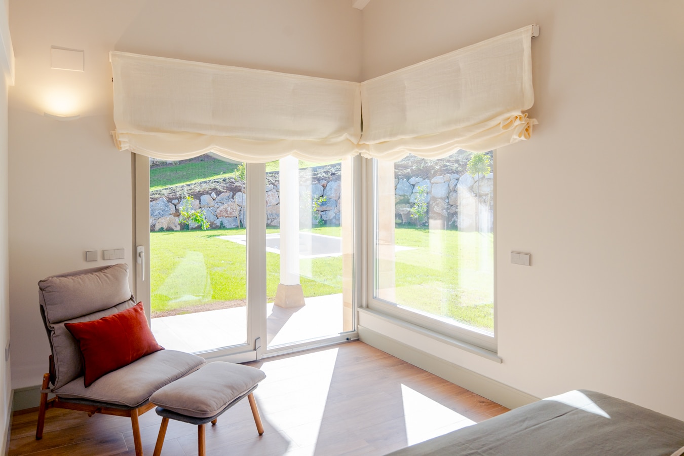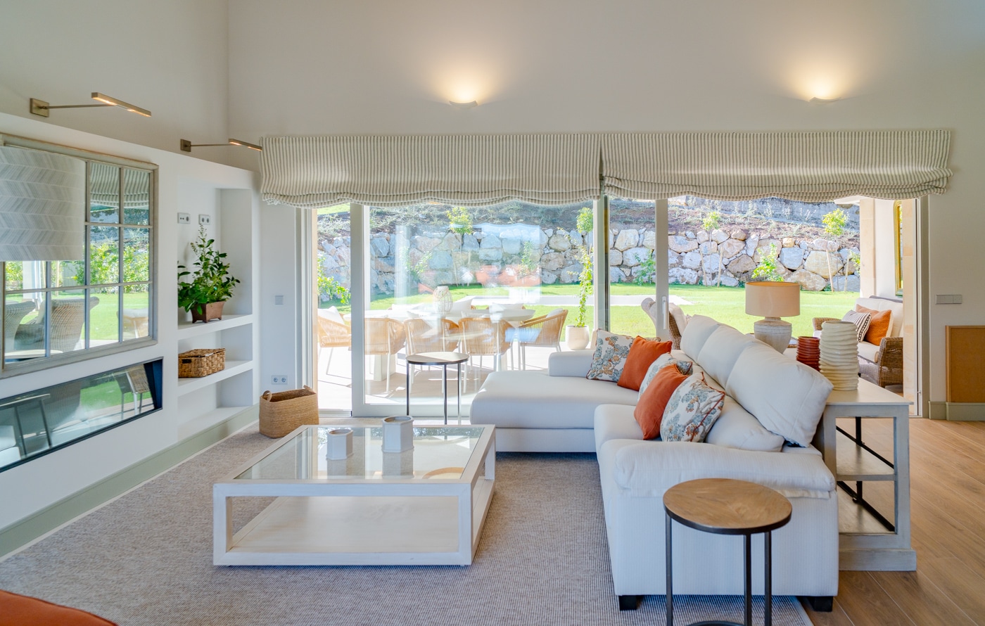 La posición elevada, apertura de sus ventanales y la orientación suroeste hacen que la propiedad reciba luz natural durante todo el día. Los amplios ventanales panorámicos enmarcan las vistas al valle y a las montañas, aportando calidez y luminosidad a cada estancia.