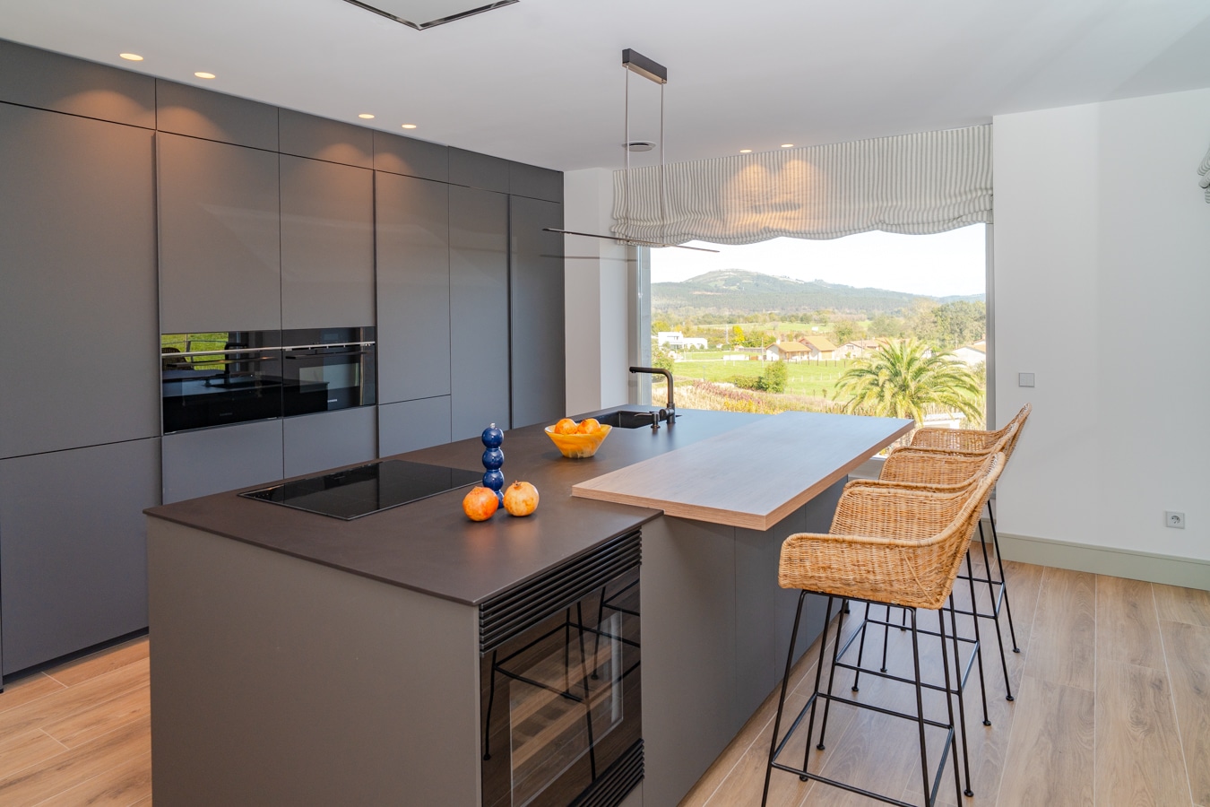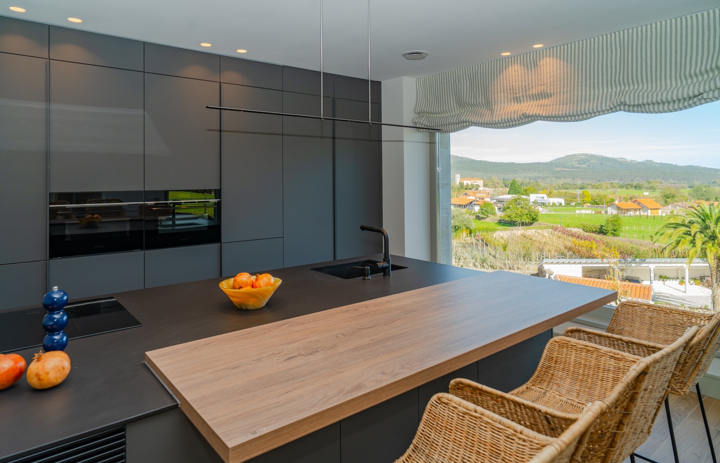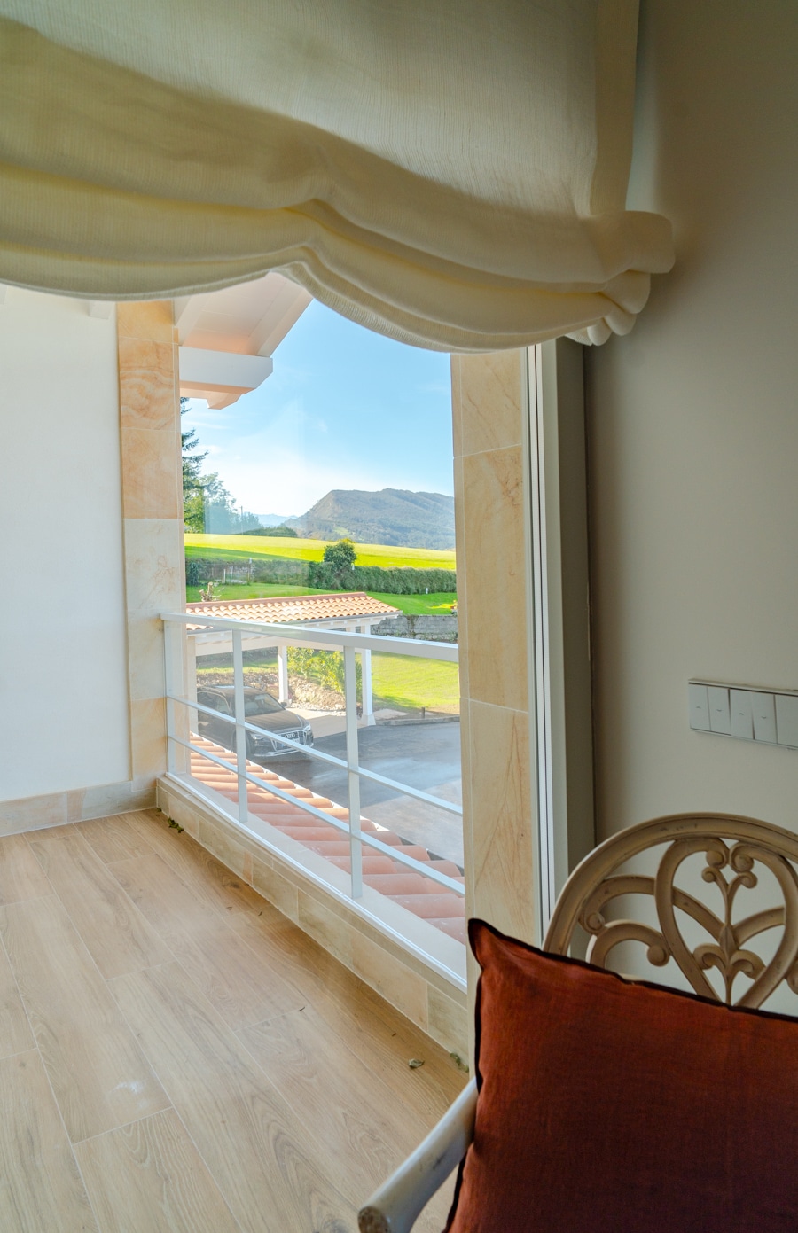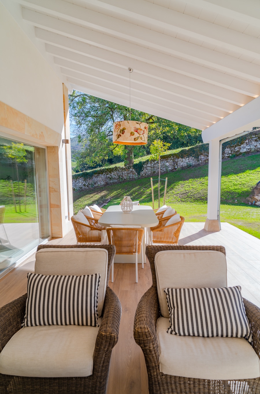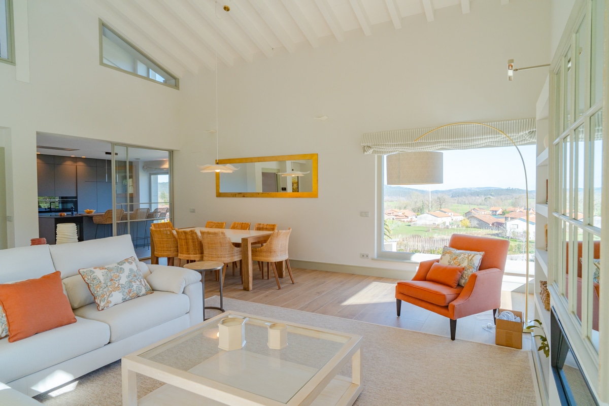 Desde su terraza y ventanales se contempla el verde paisaje del valle, que se convierte en parte esencial de la experiencia cotidiana.