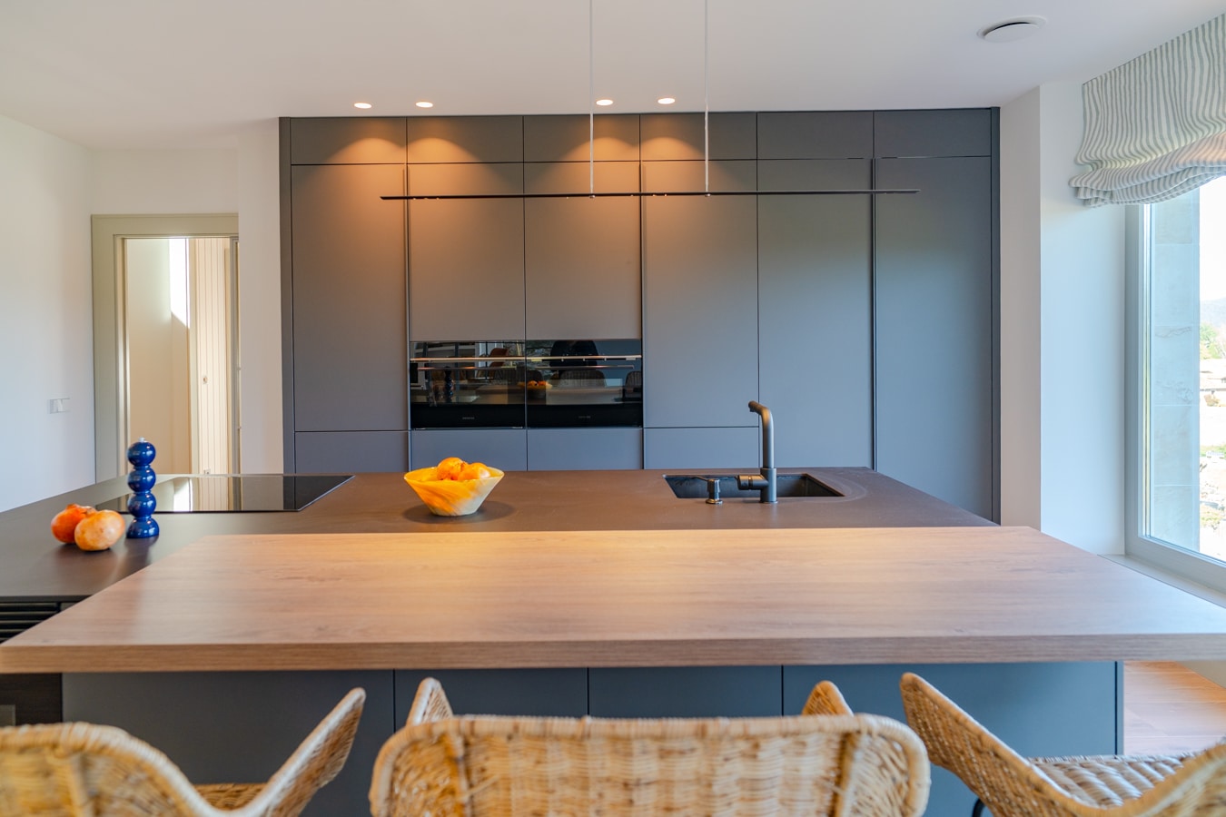 La cocina, firmada por Santos y equipada con electrodomésticos Siemens, se organiza en torno a una isla central y cuenta con acceso directo a la despensa y al lavadero, fusionando estética y funcionalidad.