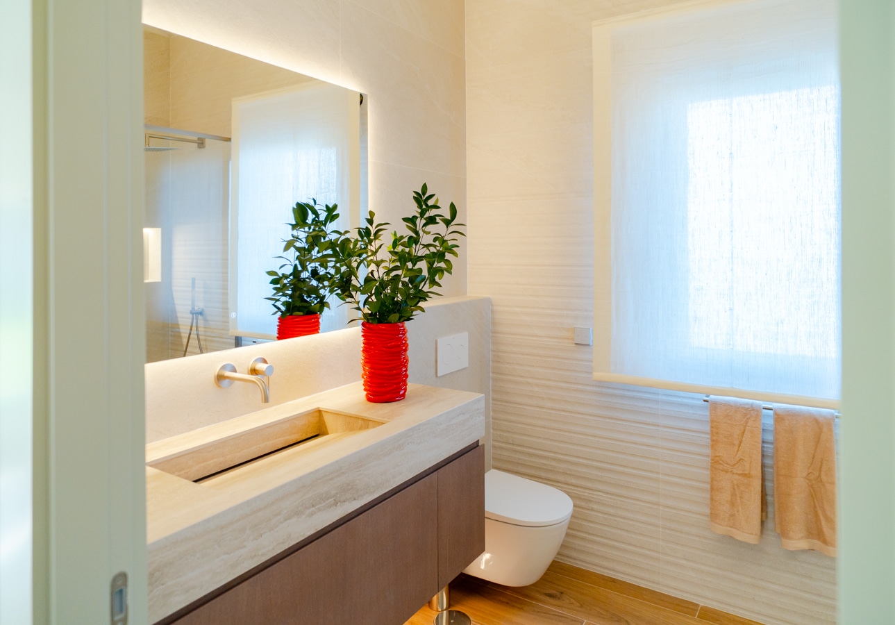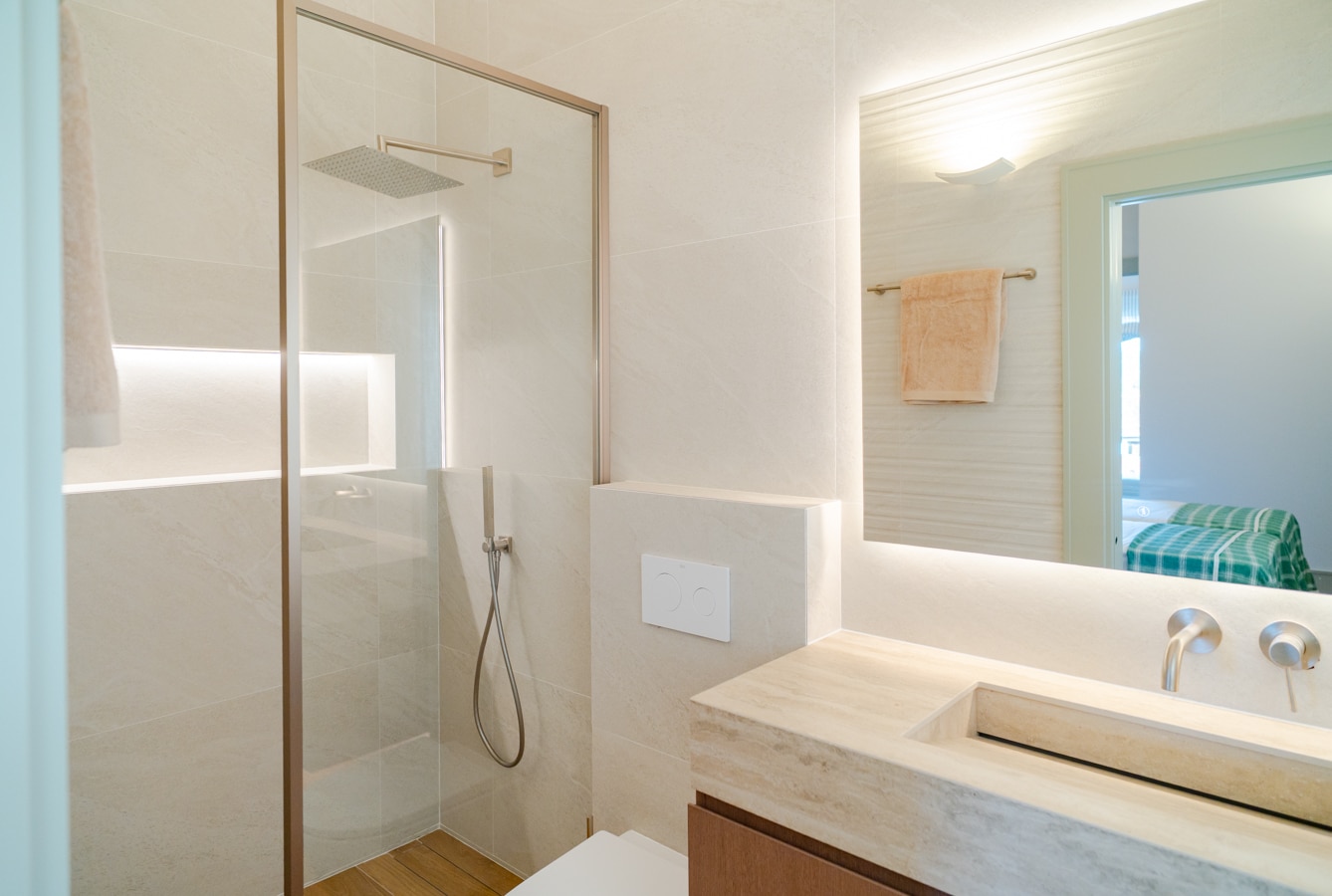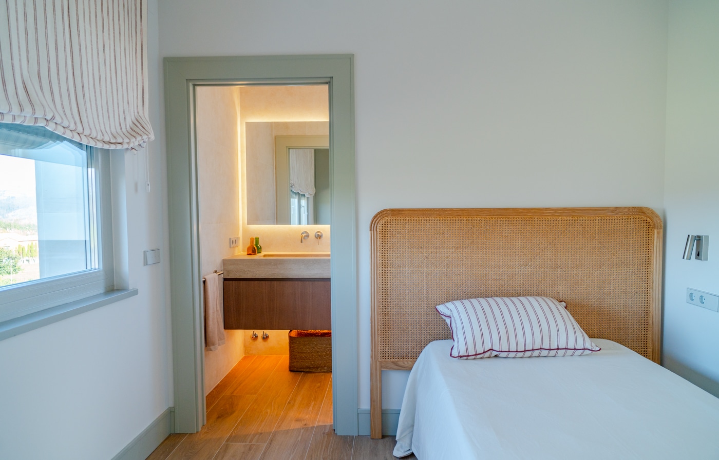 En esta misma planta se encuentran también un aseo de invitados y tres dormitorios en suite, uno destinado a invitados y la suite principal, ambos con vestidor y acceso directo al exterior.