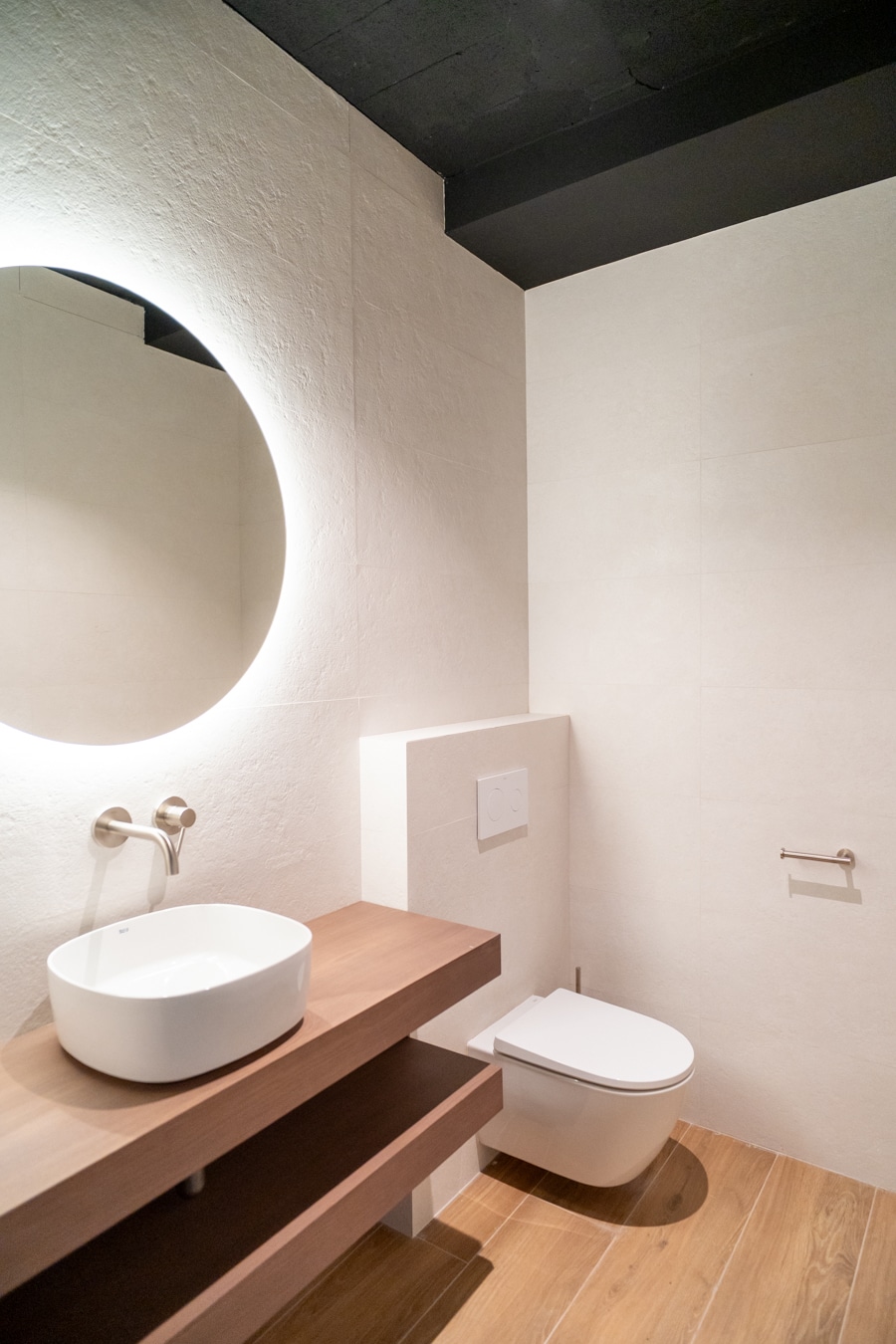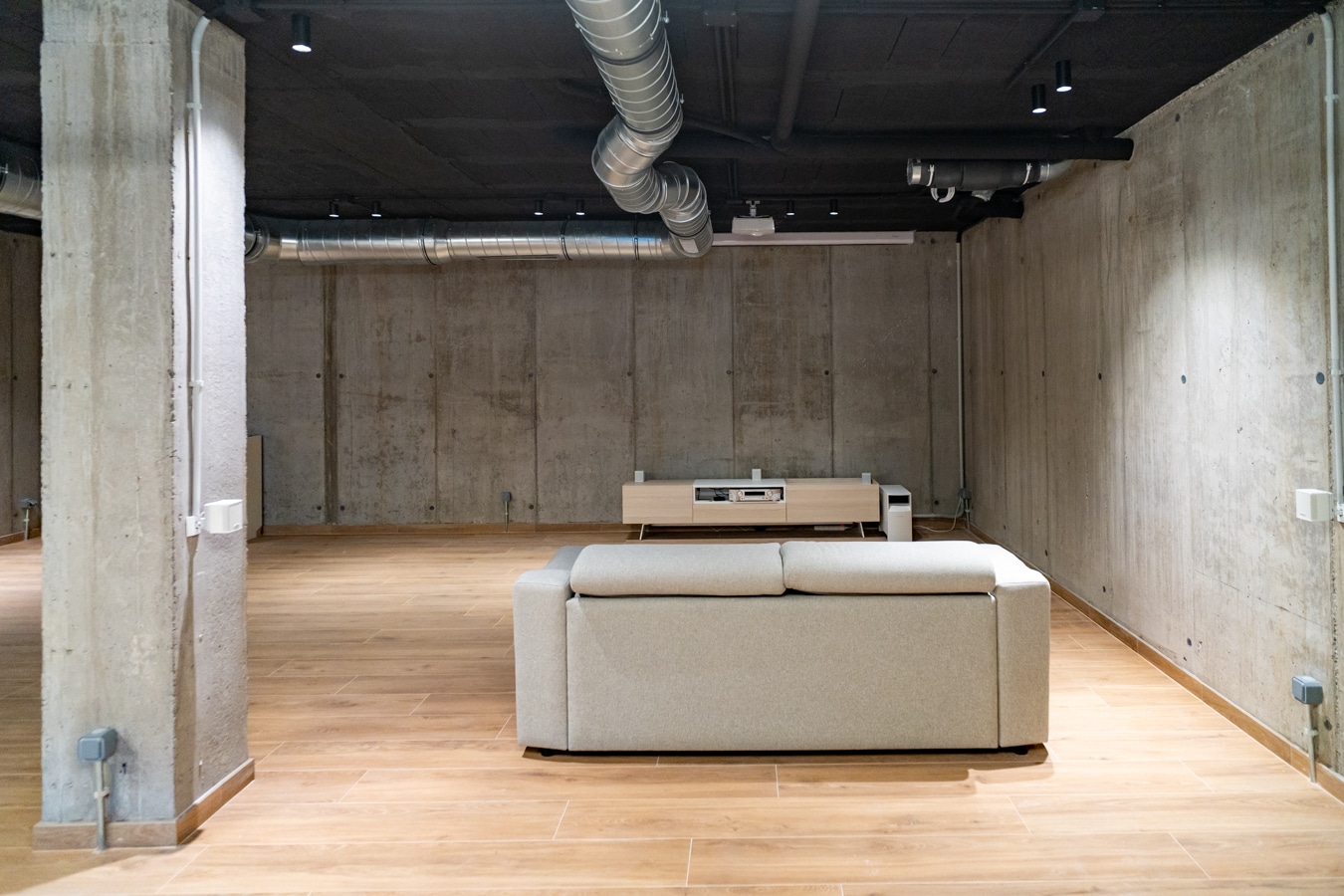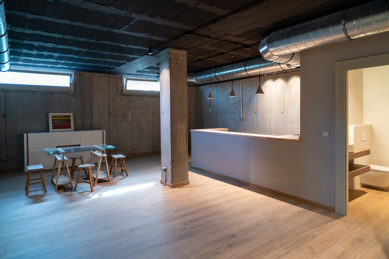 El nivel inferior sorprende por su estética de inspiración industrial: una gran bodega con sala de cine, zona de ping pong, barra para copas con nevera y lavavajillas, aseo de cortesía y cuarto de instalaciones. Un espacio cálido, versátil y con carácter, diseñado para disfrutar todo el año.