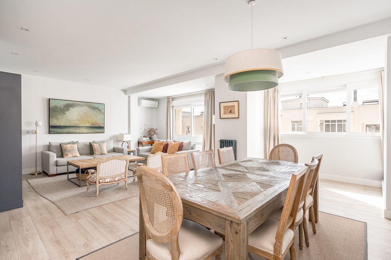 En una de las arterias principales de Madrid, en una de las zonas más codiciadas por las familias madrileñas, se encuentra esta exclusiva propiedad situada en una sexta planta. Una casa que combina la elegancia clásica del entorno con una reforma concebida para ofrecer máximo confort y funcionalidad.