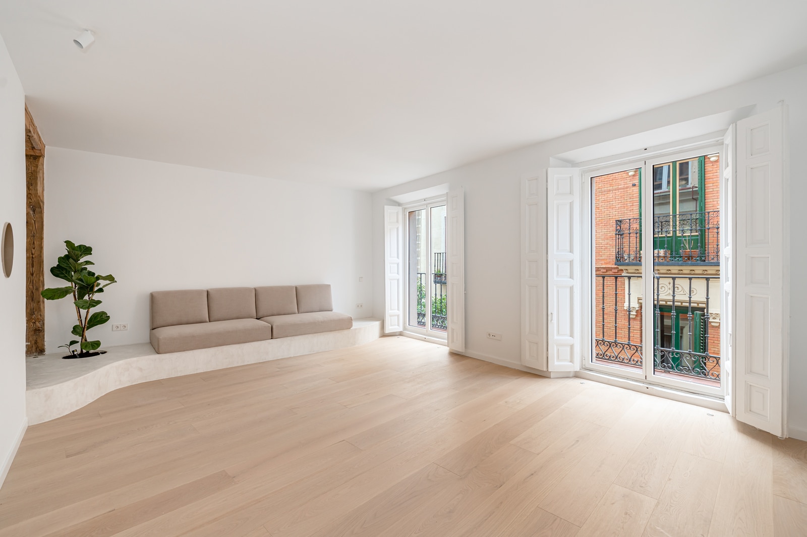 Atractiva vivienda, reformada a estrenar con calidades de primer nivel. Interiorismo de vanguardia en un entorno clásico, cuidado y confortable, situada en el barrio de las Letras, una de las zonas con más recorrido de la capital.