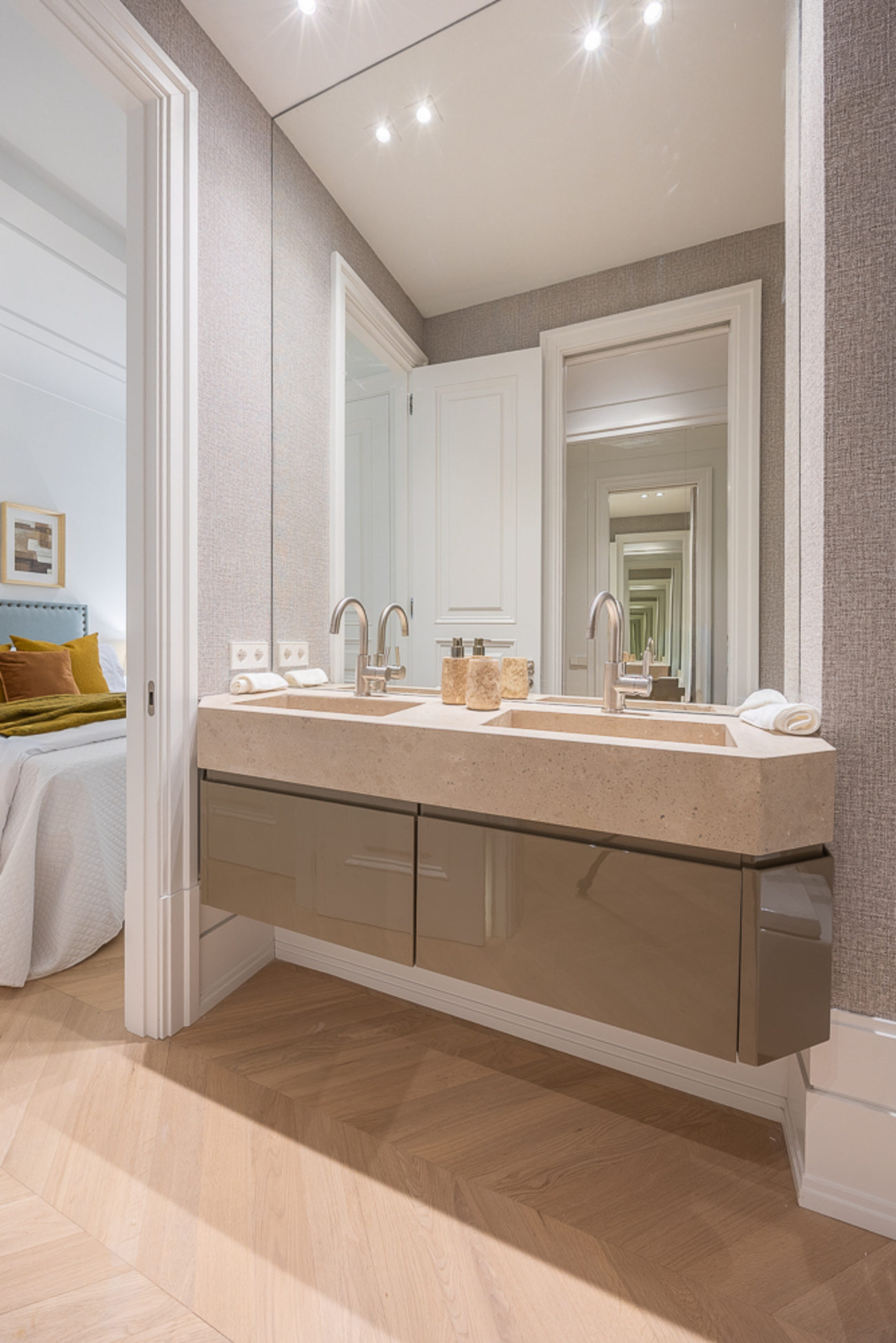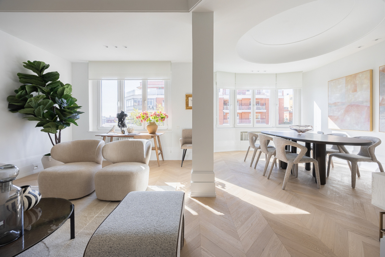 Exclusiva propiedad reformada y amueblada al detalle, donde la luz natural se convierte en la gran protagonista, bañando cada estancia gracias a su orientación y sus amplios ventanales con vistas despejadas a una de las calles más elegantes del barrio de Salamanca.