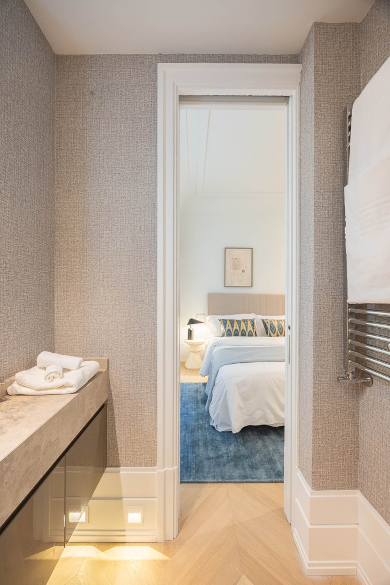 La zona privada alberga cuatro dormitorios, tres de ellos en suite, todos con una atmósfera cálida y elegante. Completan la vivienda un amplio trastero y portero físico, ofreciendo una experiencia residencial de máxima comodidad y exclusividad