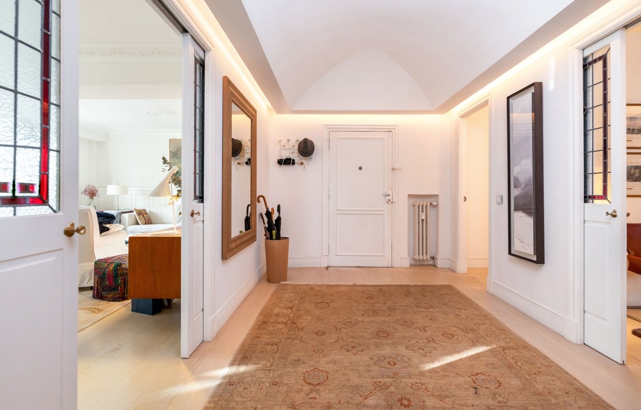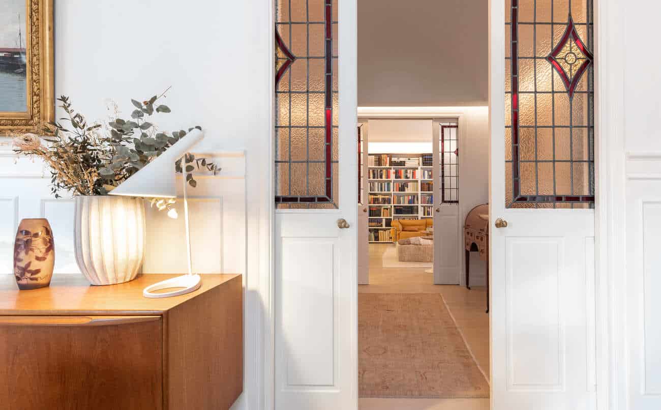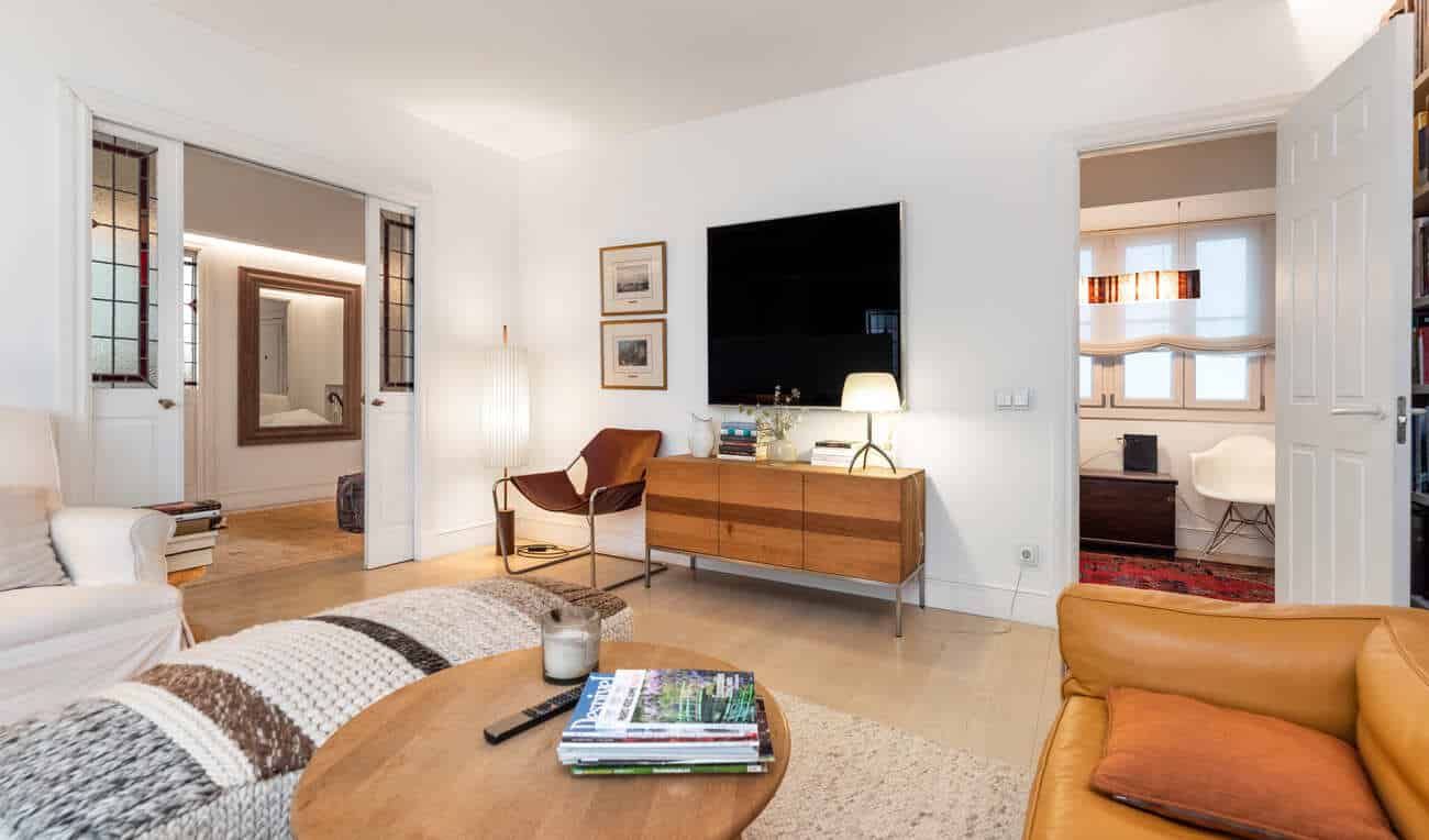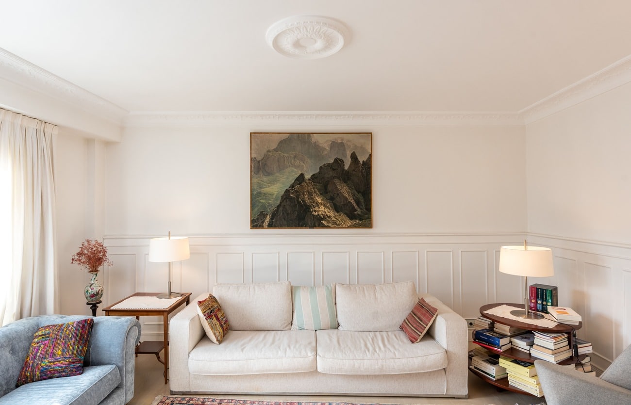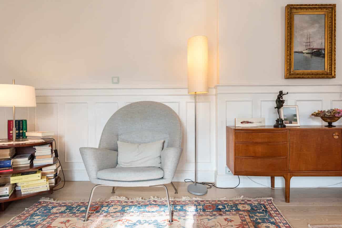 En una quinta planta exterior, recibe una luz constante y suave que acaricia las molduras originales y se posa sobre maderas nobles, tejidos naturales y piezas con historia. La atmósfera es calmada, íntima y envolvente; un equilibrio entre lo clásico y lo contemporáneo.