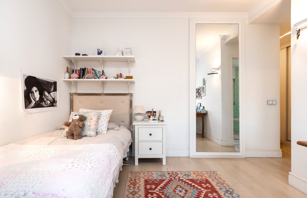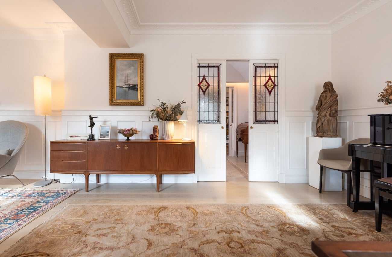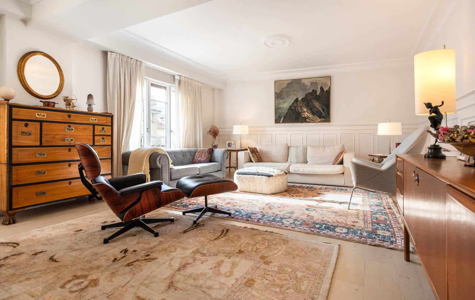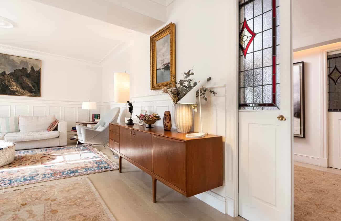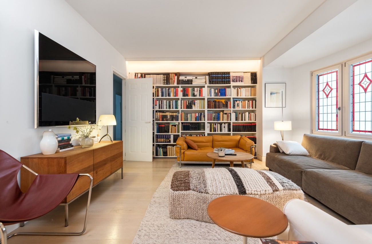 En una quinta planta exterior, recibe una luz constante y suave que acaricia las molduras originales y se posa sobre maderas nobles, tejidos naturales y piezas con historia. La atmósfera es calmada, íntima y envolvente; un equilibrio entre lo clásico y lo contemporáneo.