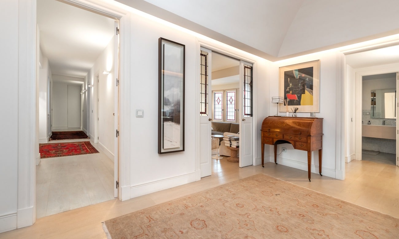 La vivienda articula su generosa planta en dos áreas maestras conectadas por un majestuoso recibidor.
