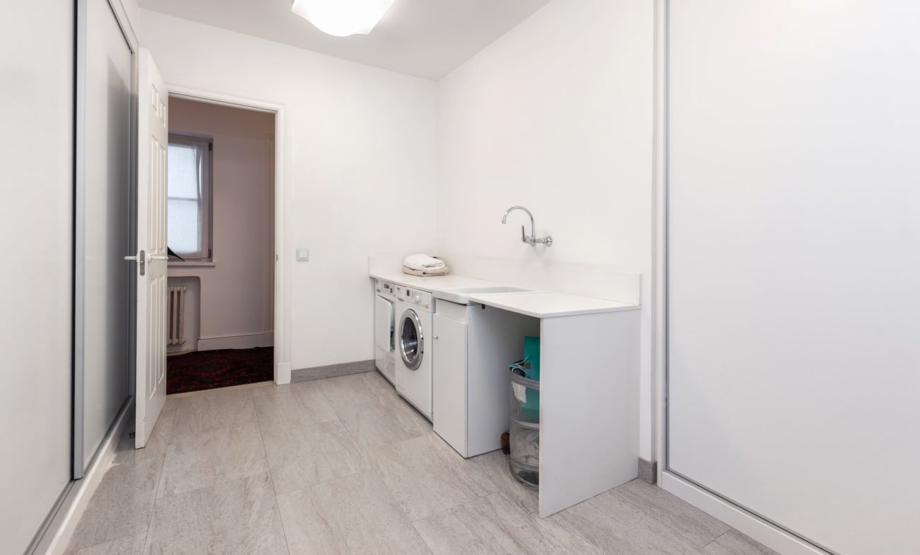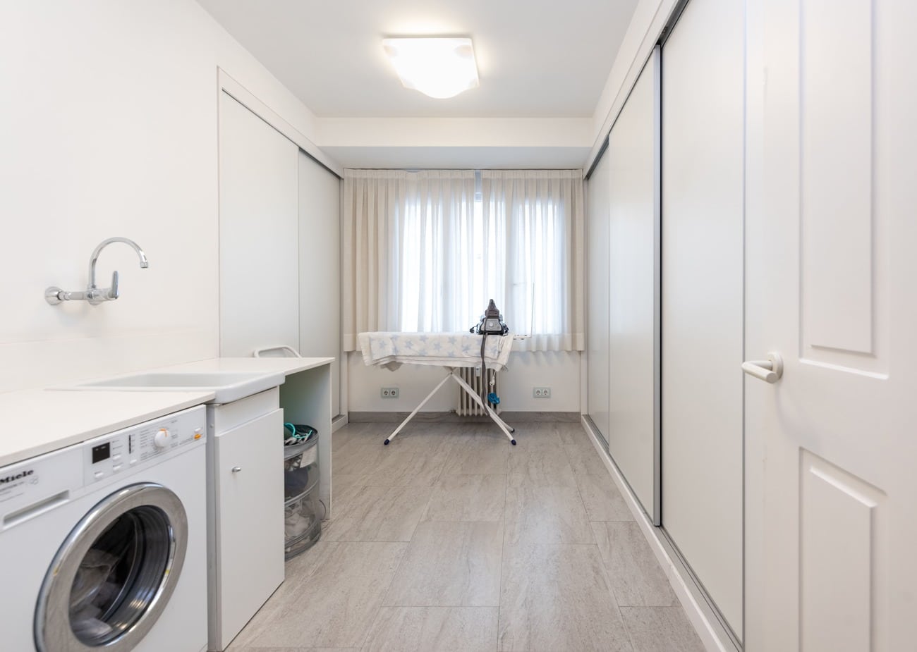 La segunda ala de la propiedad se dedica a la funcionalidad y el confort familiar: alberga una cocina de diseño con comedor integrado y una sofisticada zona de lavandería equipada con soluciones de almacenaje invisible y electrodomésticos de alta gama.